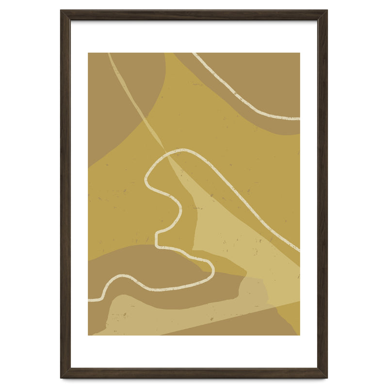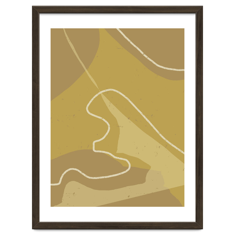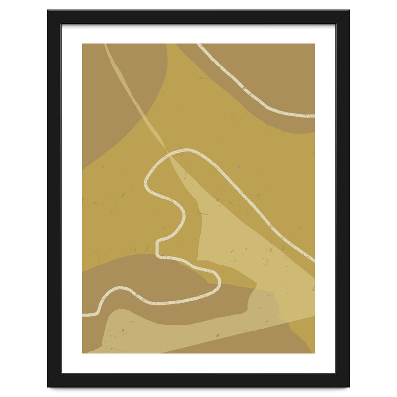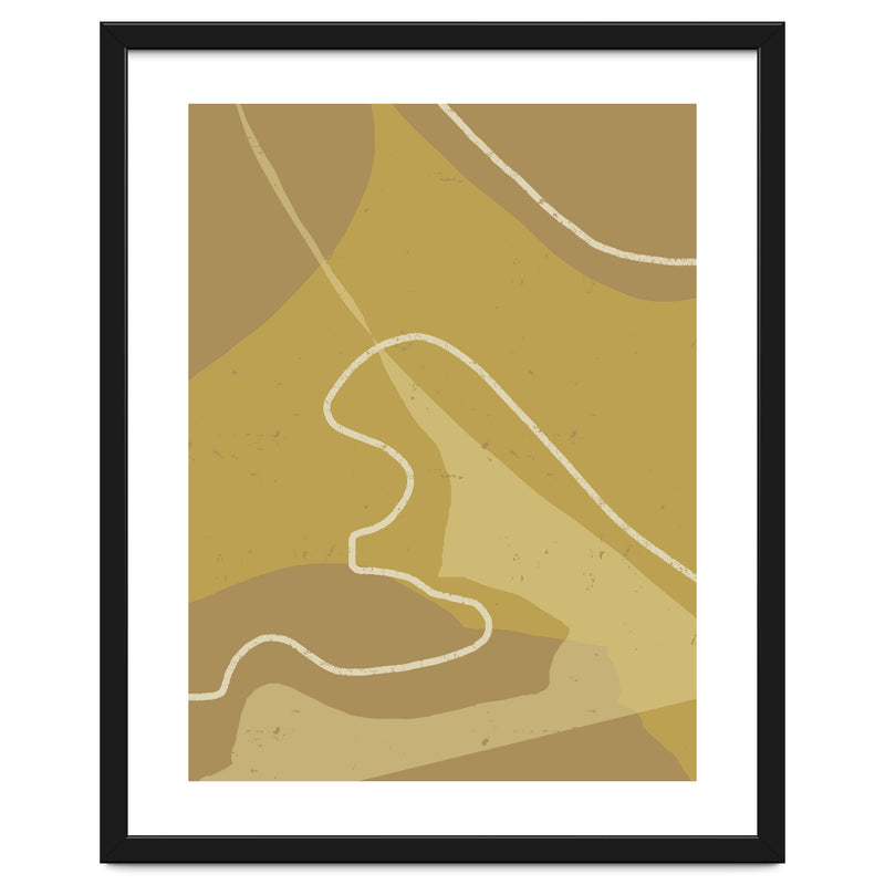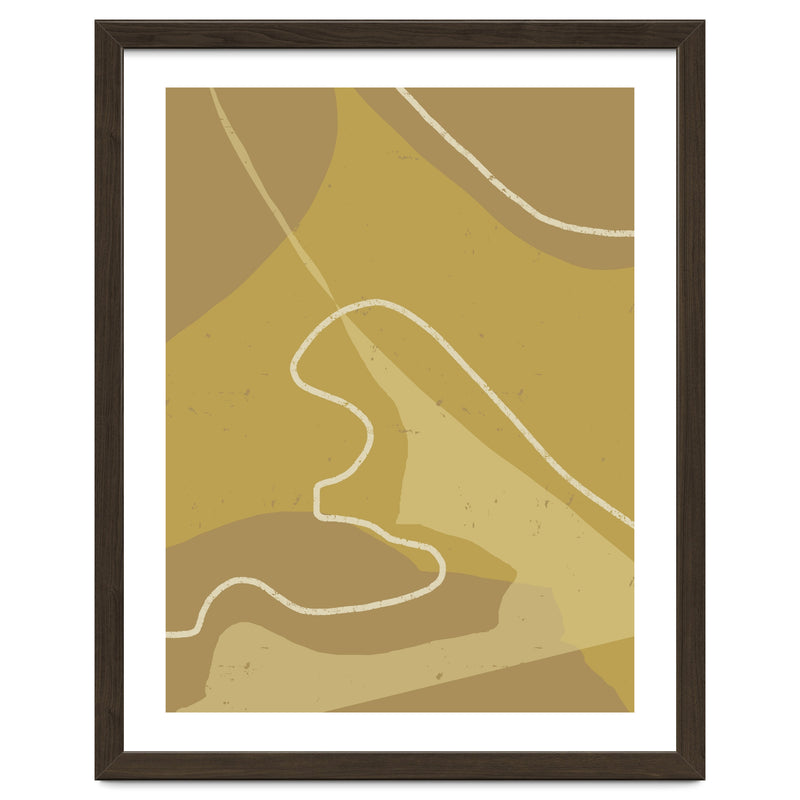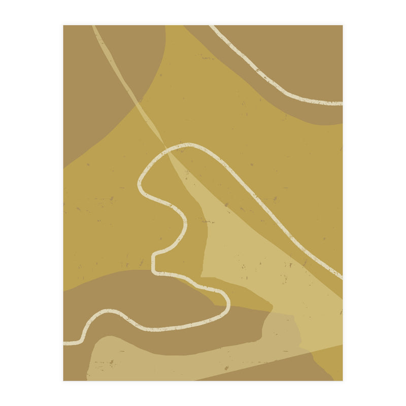 Soft layers of earth tones and flowing white lines create the impression of a deep exploration into the earth's richness and textures.