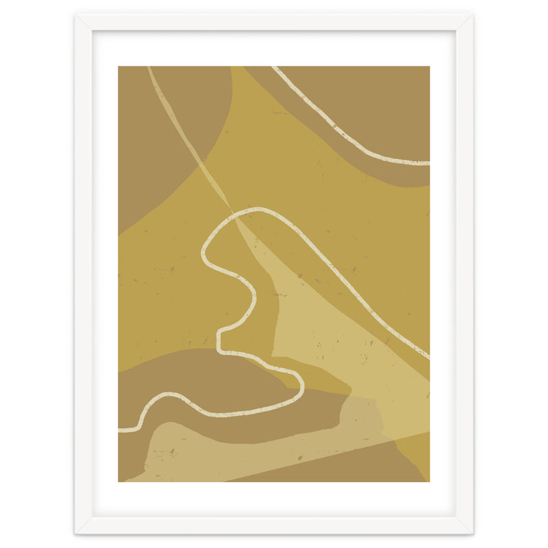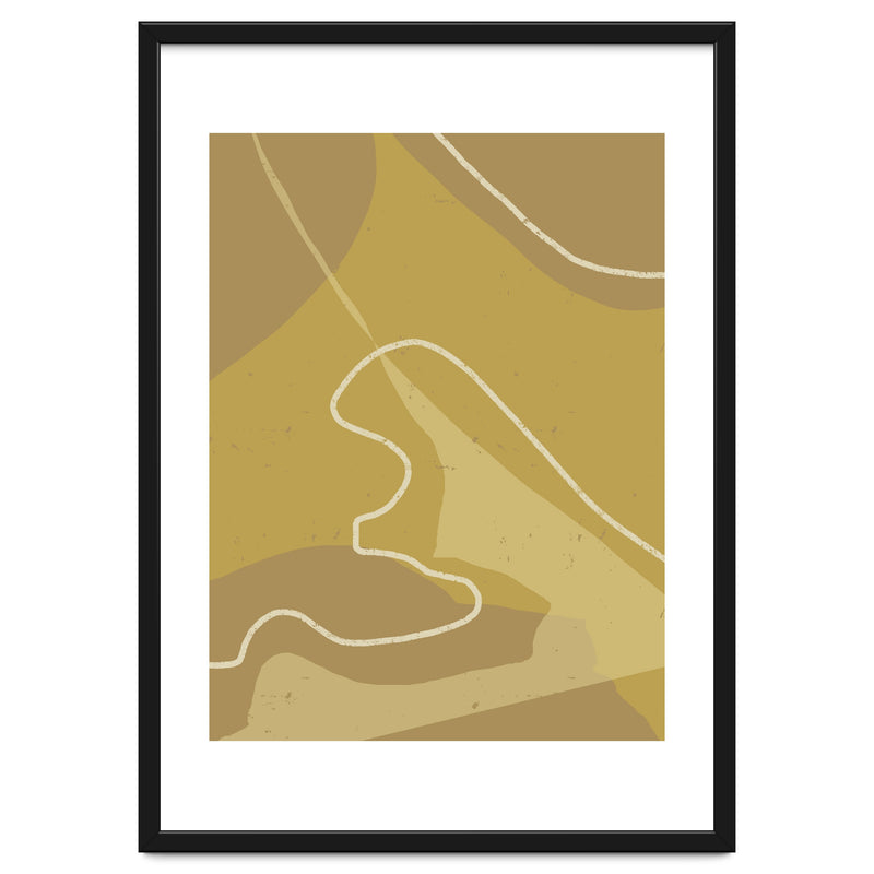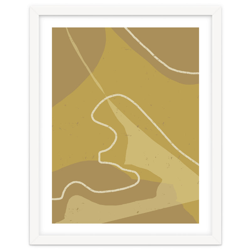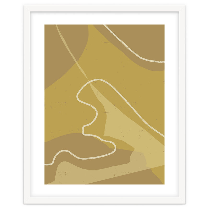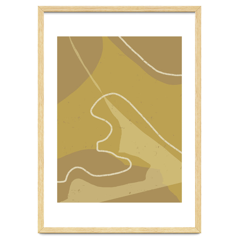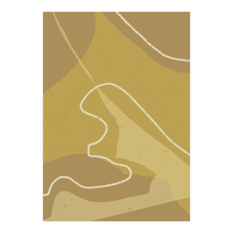 Soft layers of earth tones and flowing white lines create the impression of a deep exploration into the earth's richness and textures.