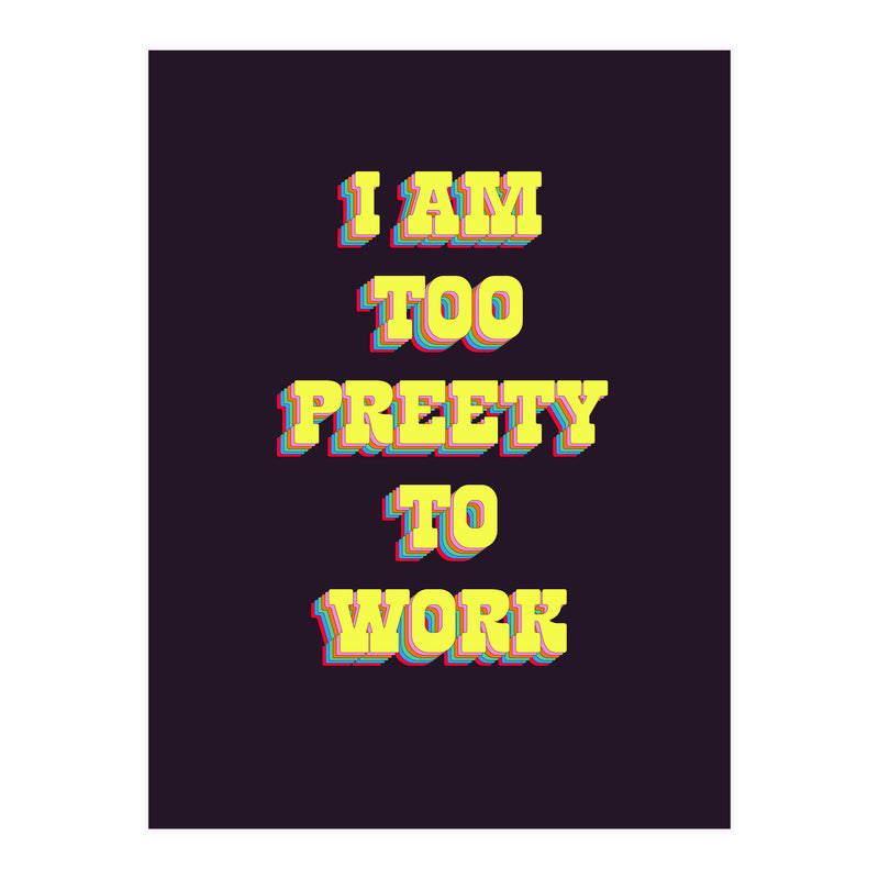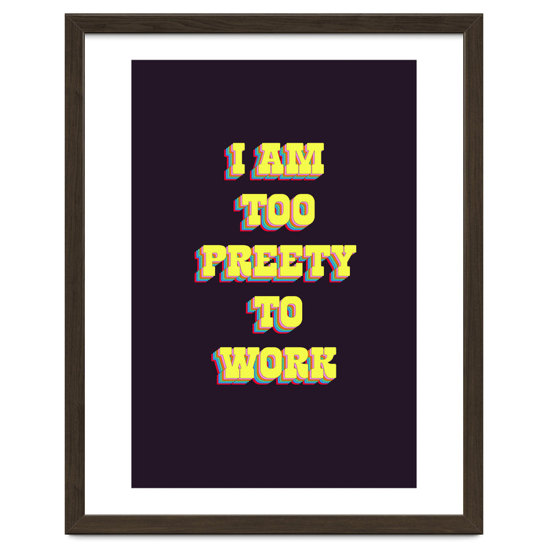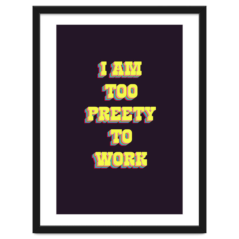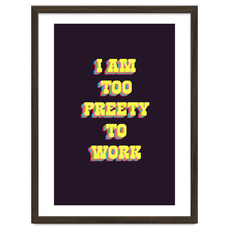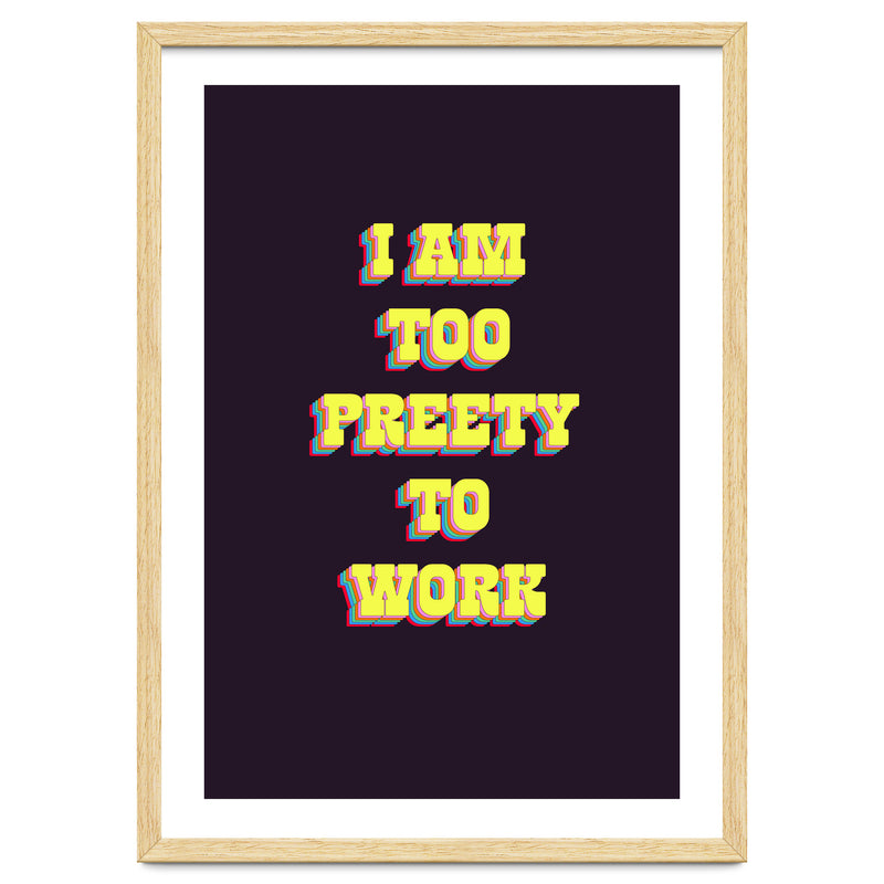 I’m Too Pretty To Work, Funny Feminine Quote Print for Office Home Decor (Print Only)