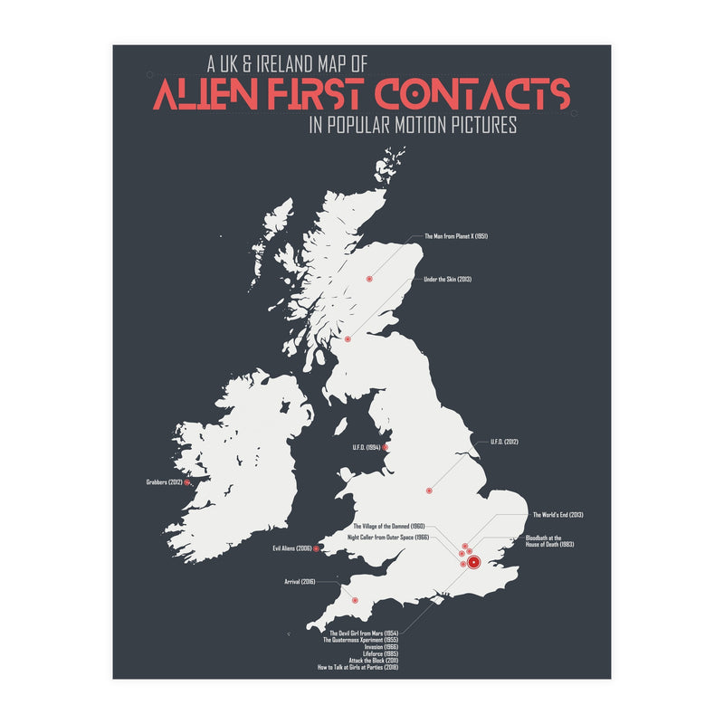 When aliens land on earth in films, where is that usually? OK yes quite often in the US, but it can happen in the UK and Ireland as well! A map of first contacts in movies, from blockbuster to forgotten films.