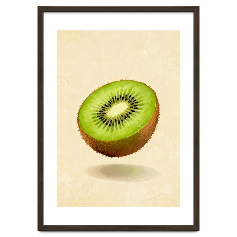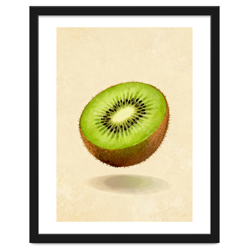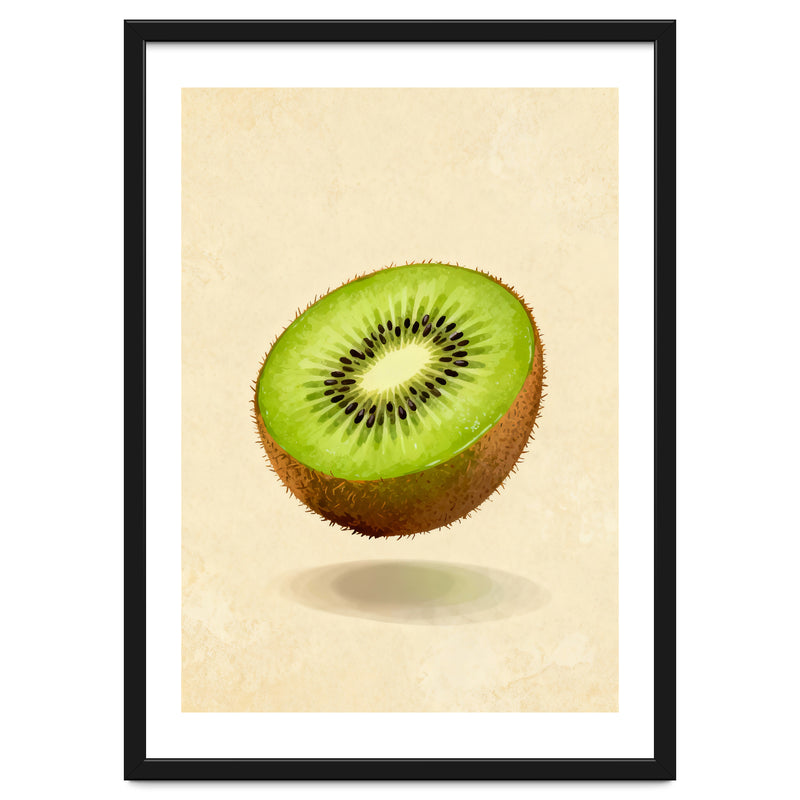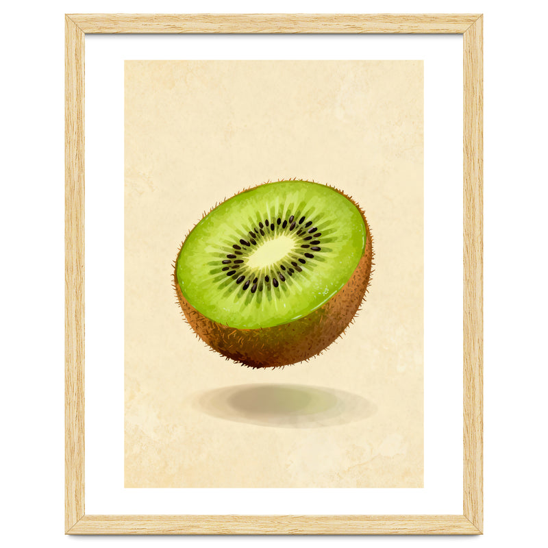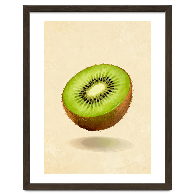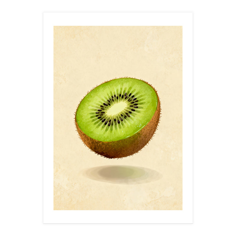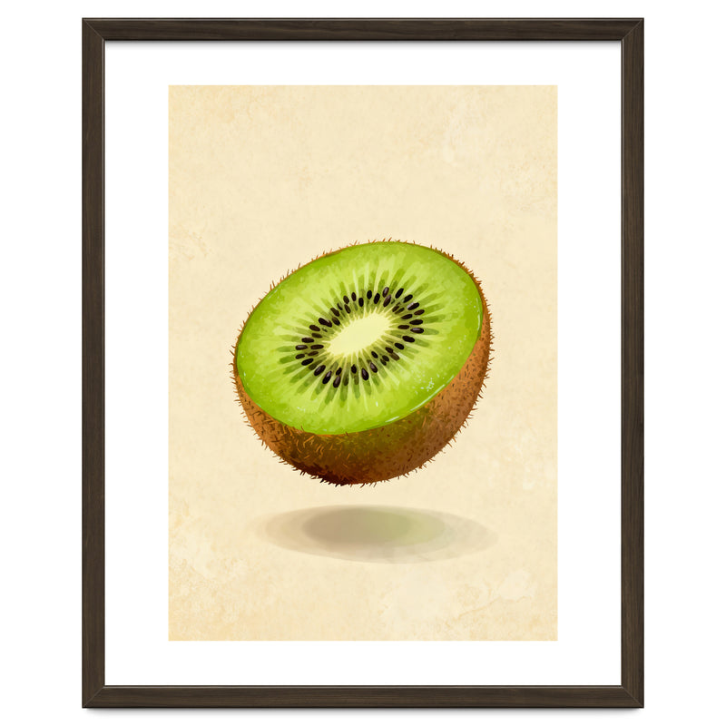 A refreshing watercolor illustration of a kiwi slice, detailed with soft brush textures and natural green tones. This artwork radiates freshness and simplicity, perfect for brightening up kitchens, cafés, or modern minimalist spaces.