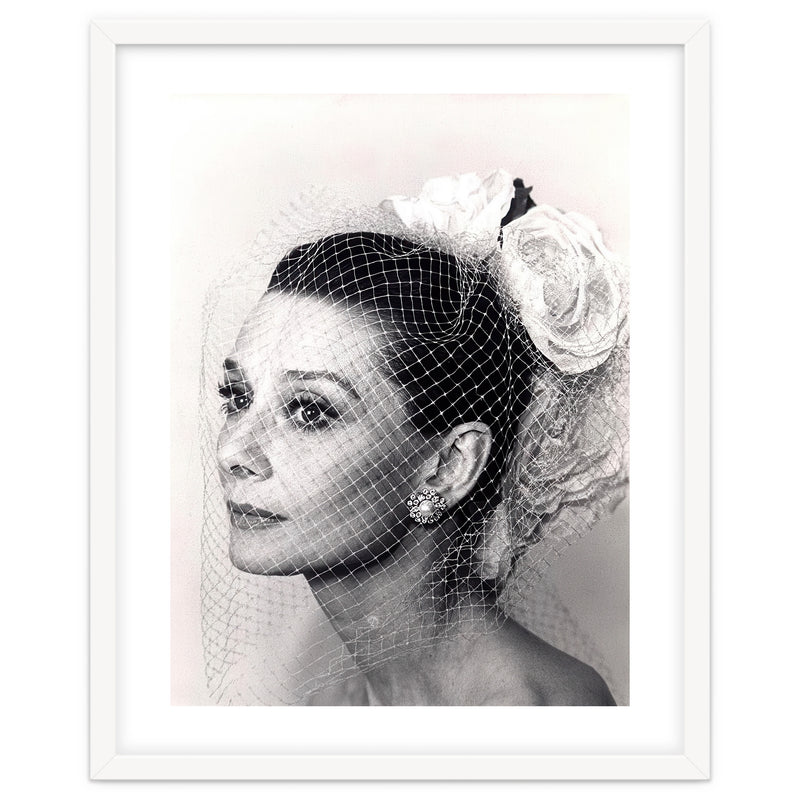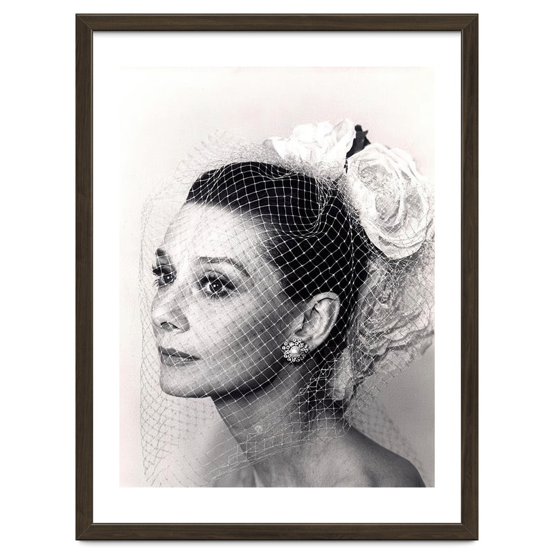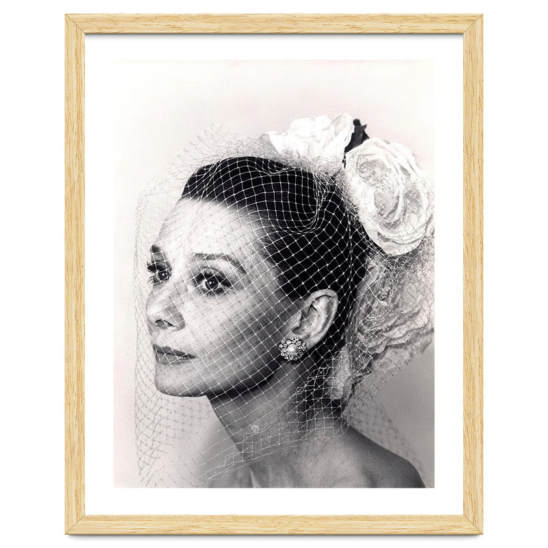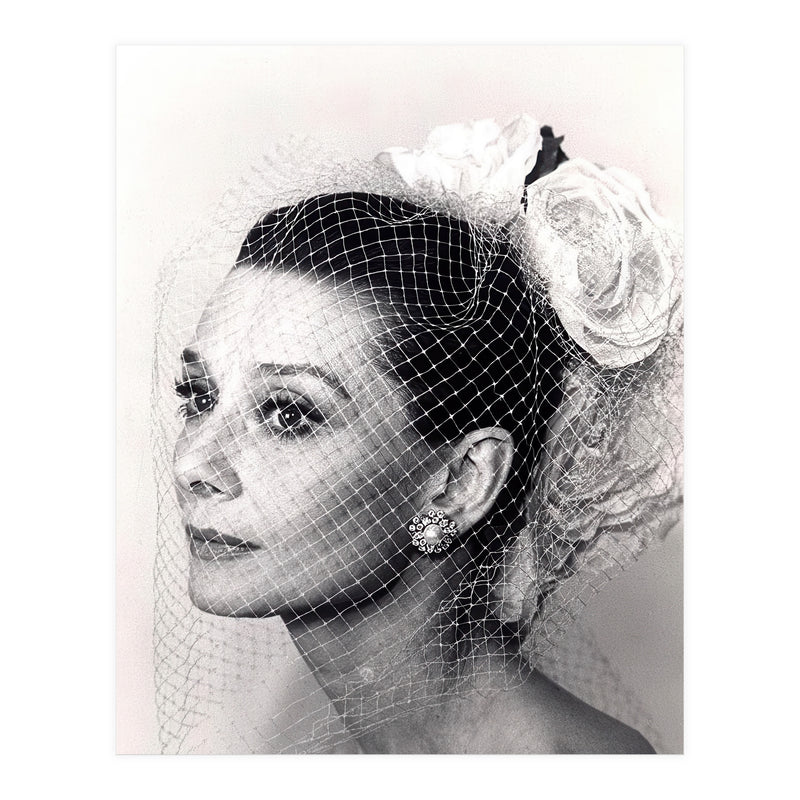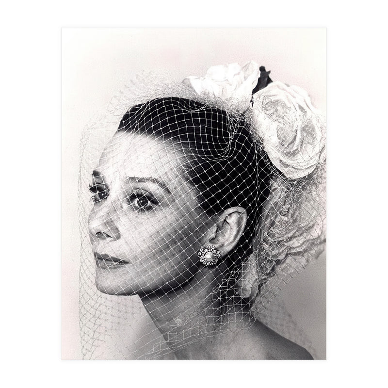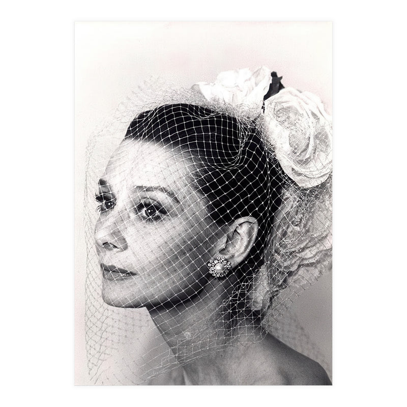 Audrey Hepburn with Veil, Classic Hollywood Glamour Photography, Black and White Icon Portrait