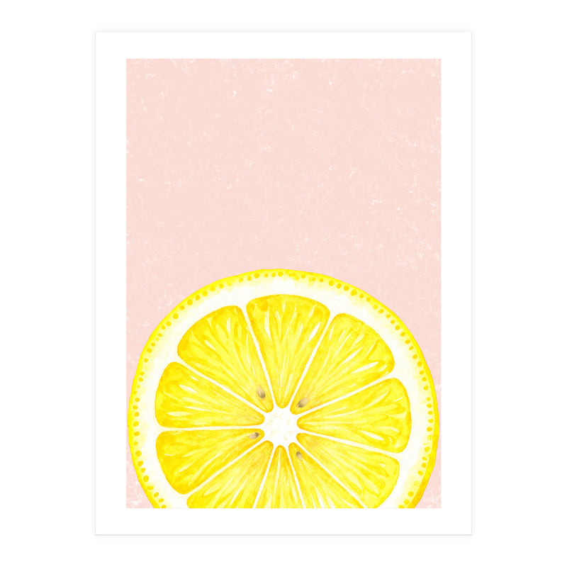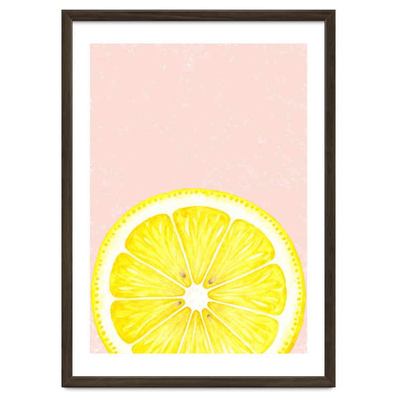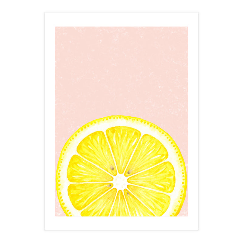 A bright yellow lemon slice against a soft pink background. Light, cheerful, and full of summer mood. Great for kitchens, cafés, and bright spaces. Perfect for anyone who loves citrus, fresh colors, and fun décor.
