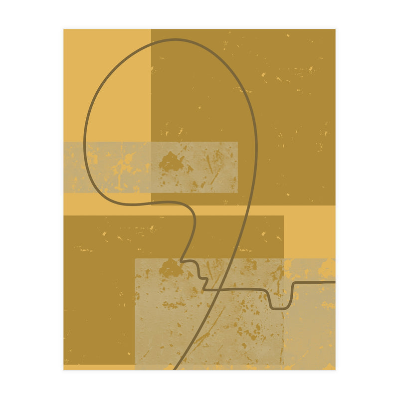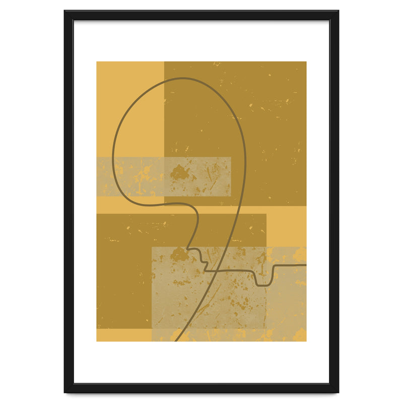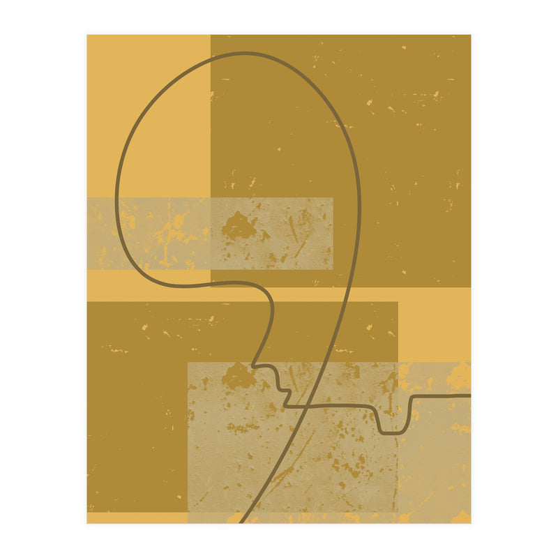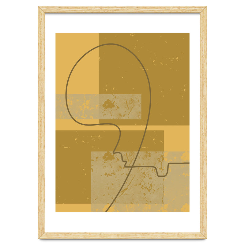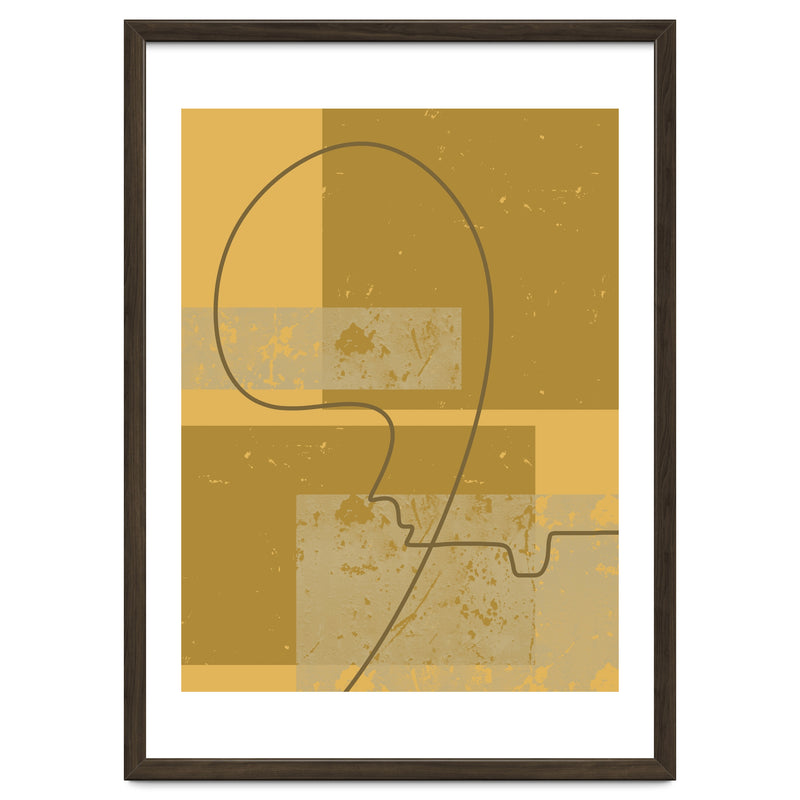 An abstract composition presenting a facial profile with minimalist lines, combined with geometric shapes and smooth textures, creating a mysterious and intriguing impression.