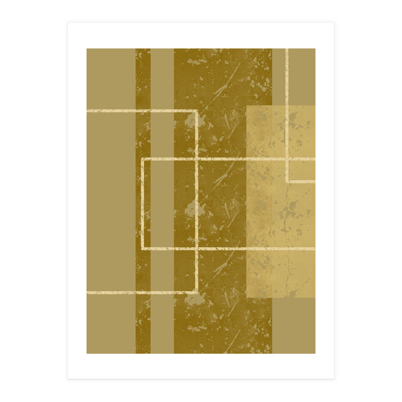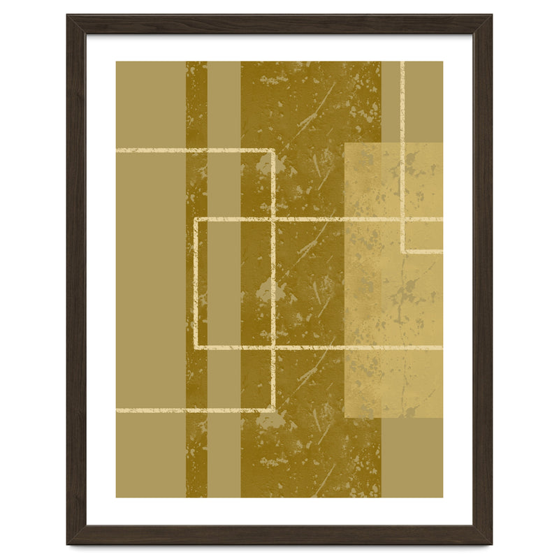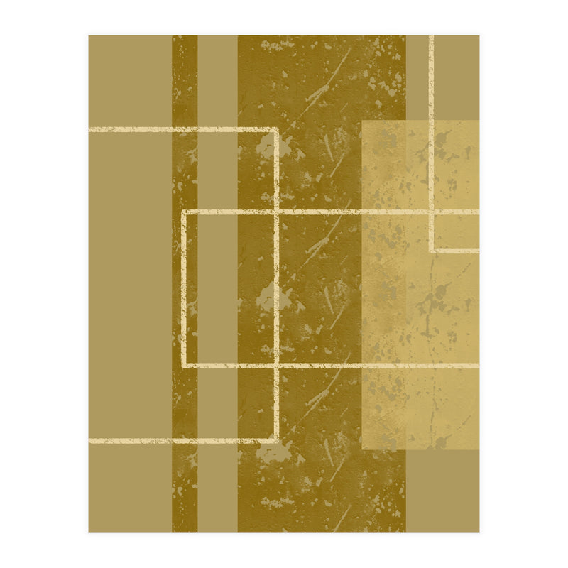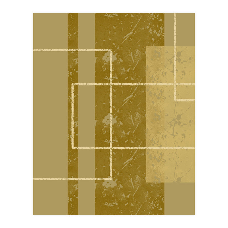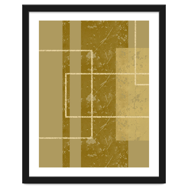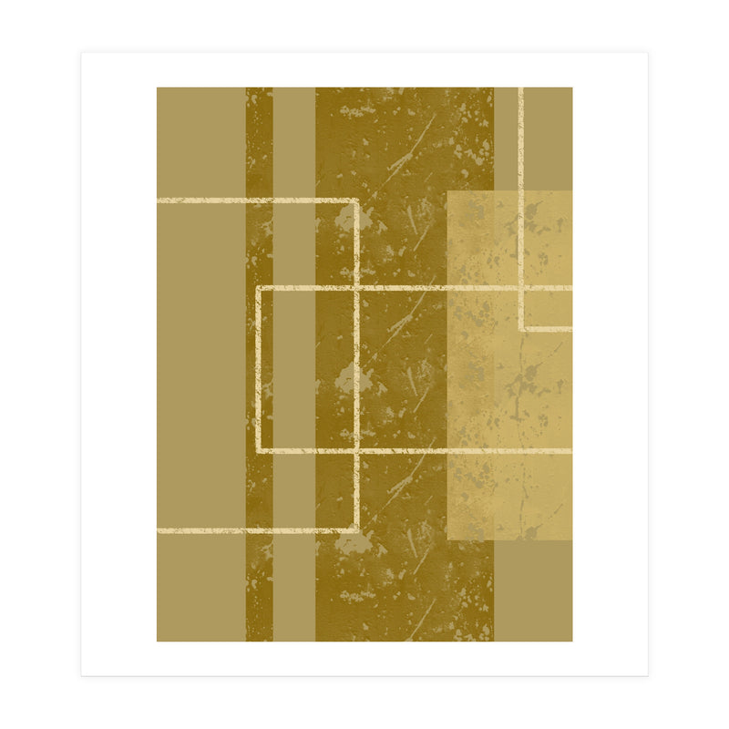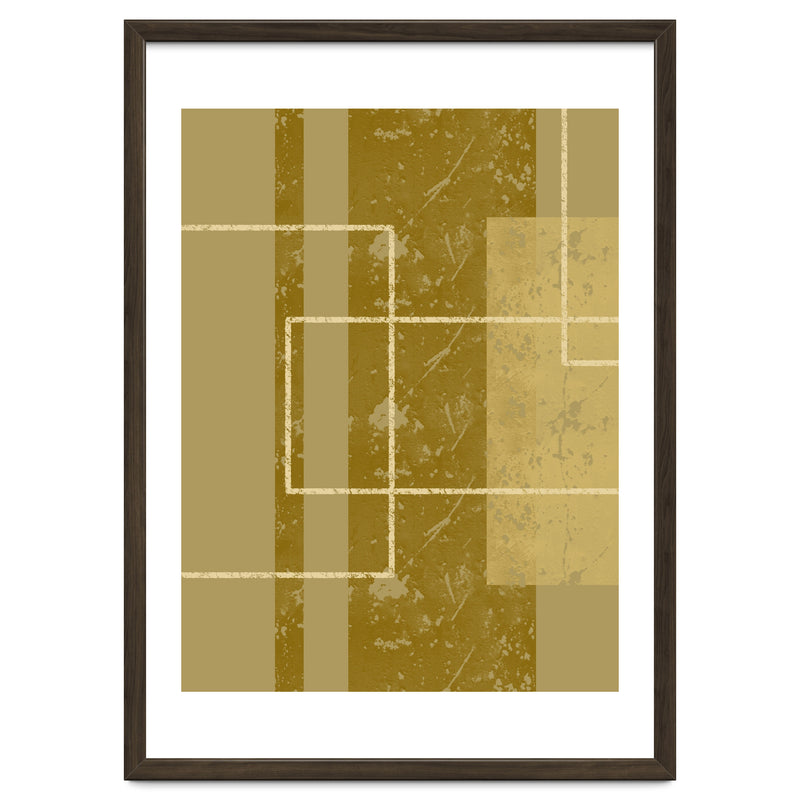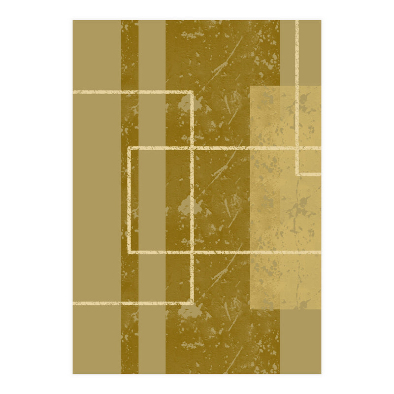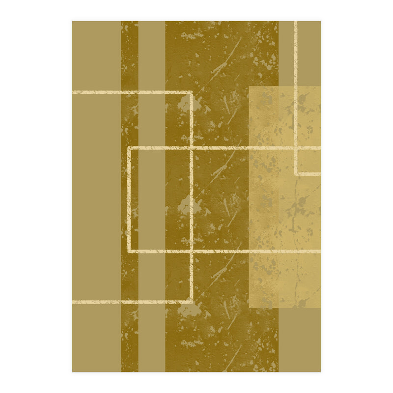 Structured geometric patterns with golden lines and rich color layers create the impression of a strong and luxurious construction.