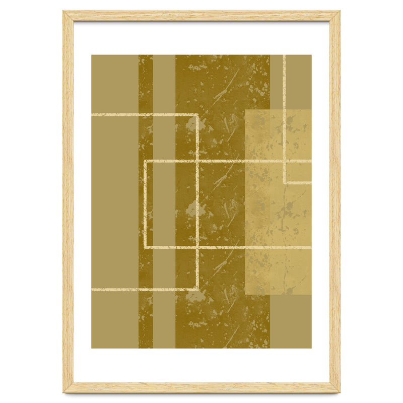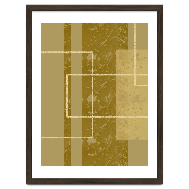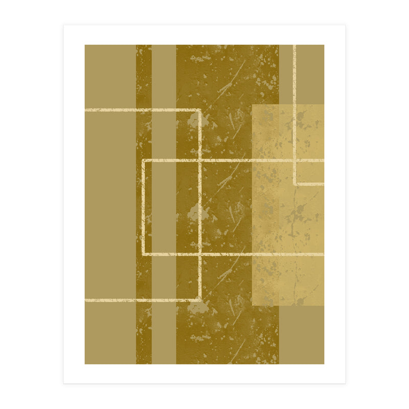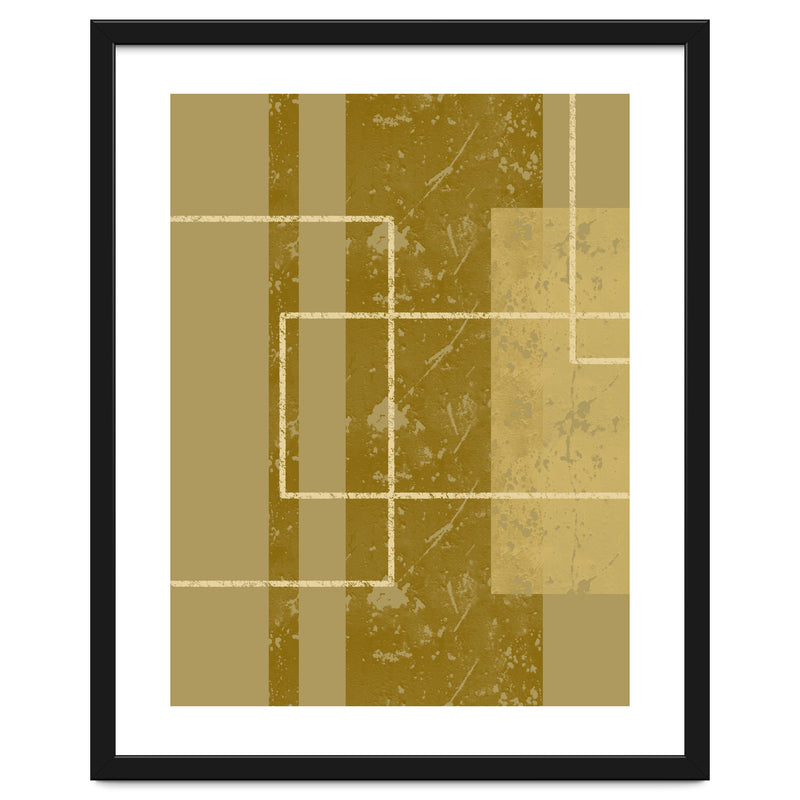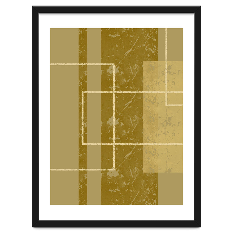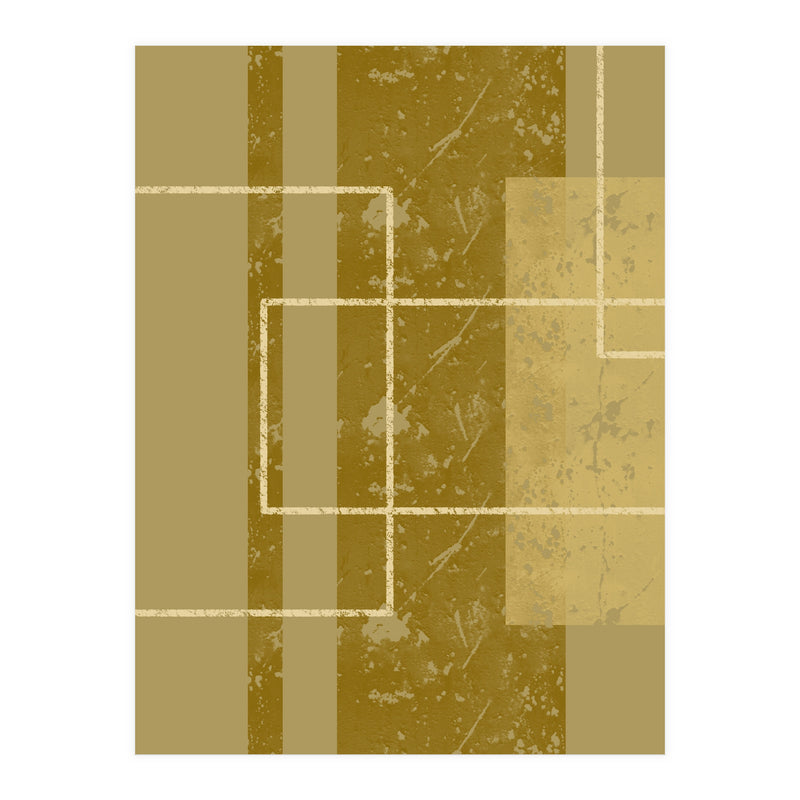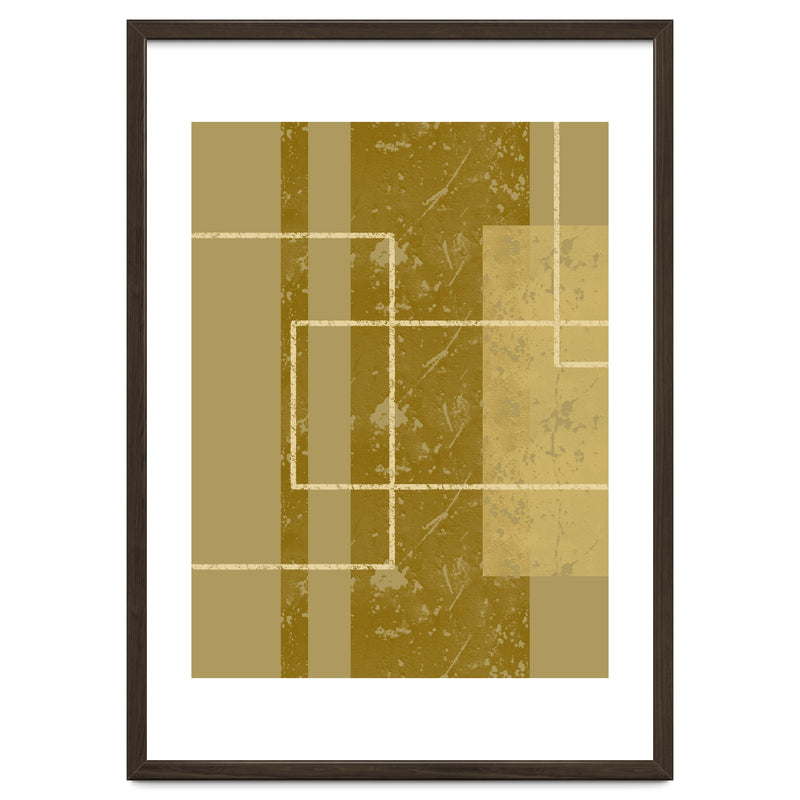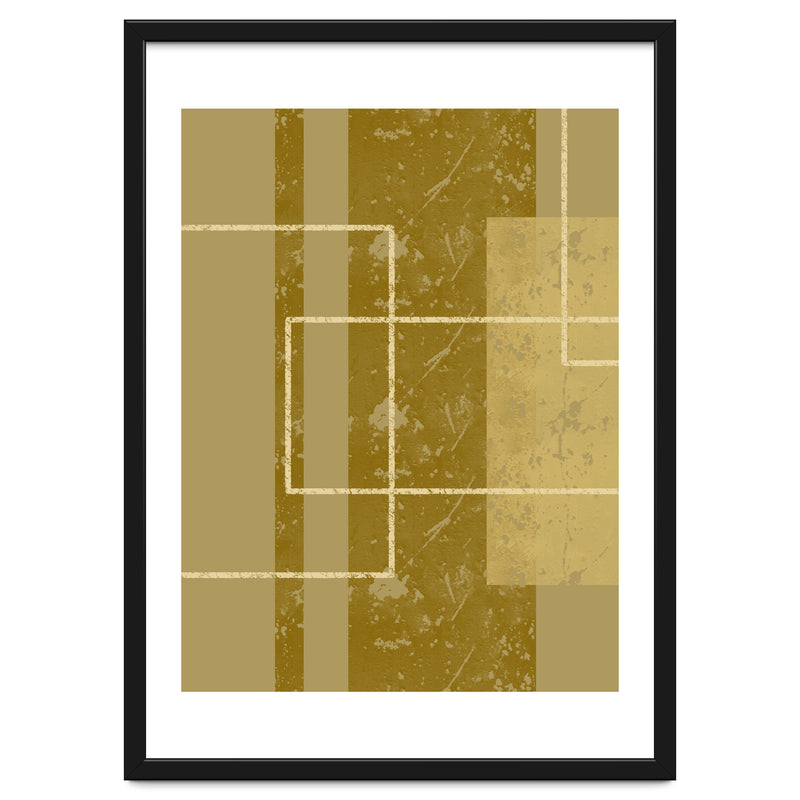 Structured geometric patterns with golden lines and rich color layers create the impression of a strong and luxurious construction.