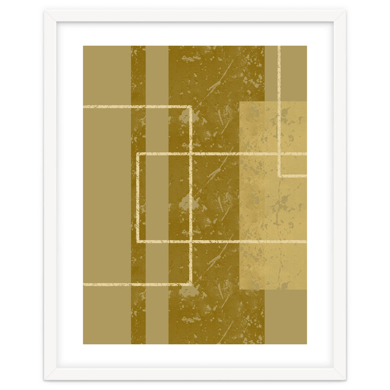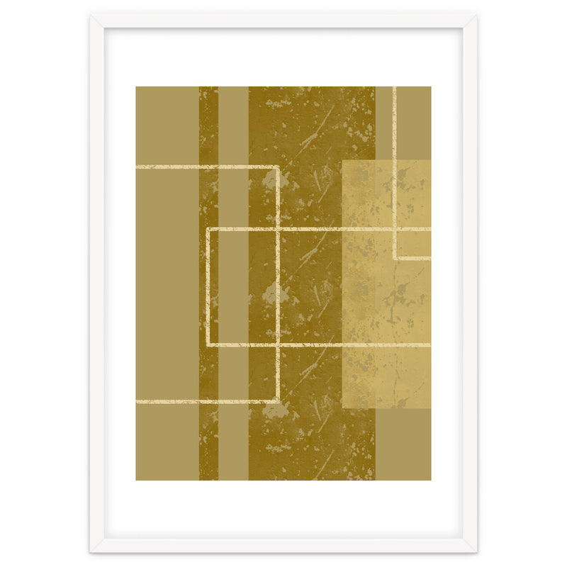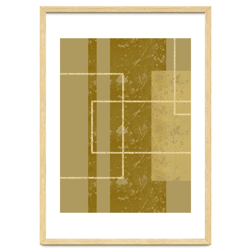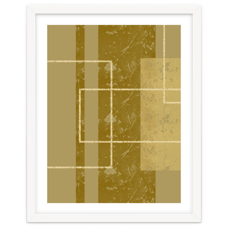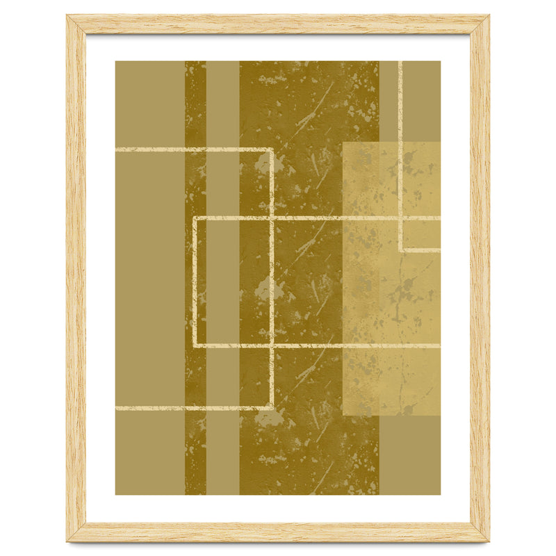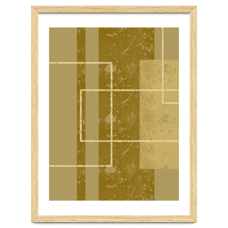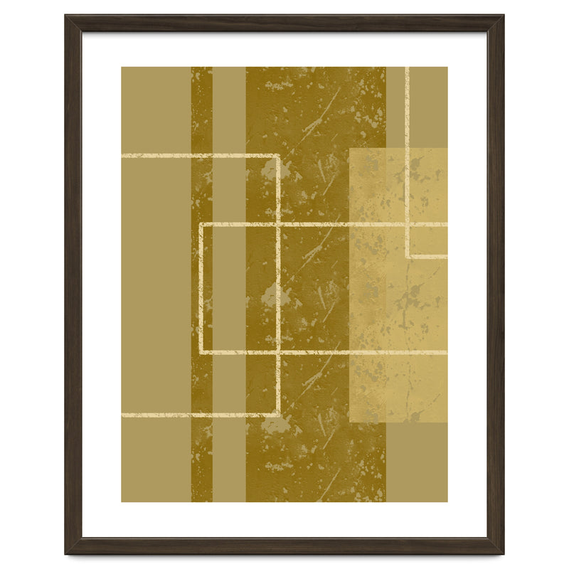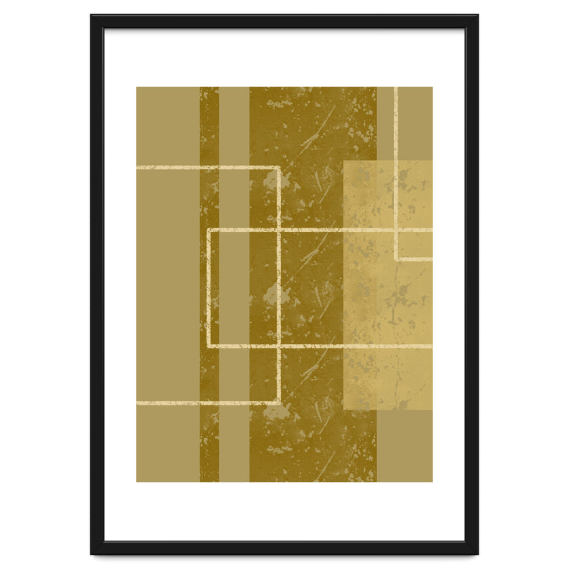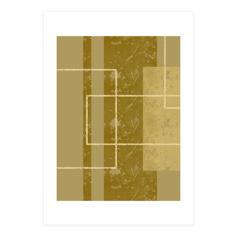 Structured geometric patterns with golden lines and rich color layers create the impression of a strong and luxurious construction.
