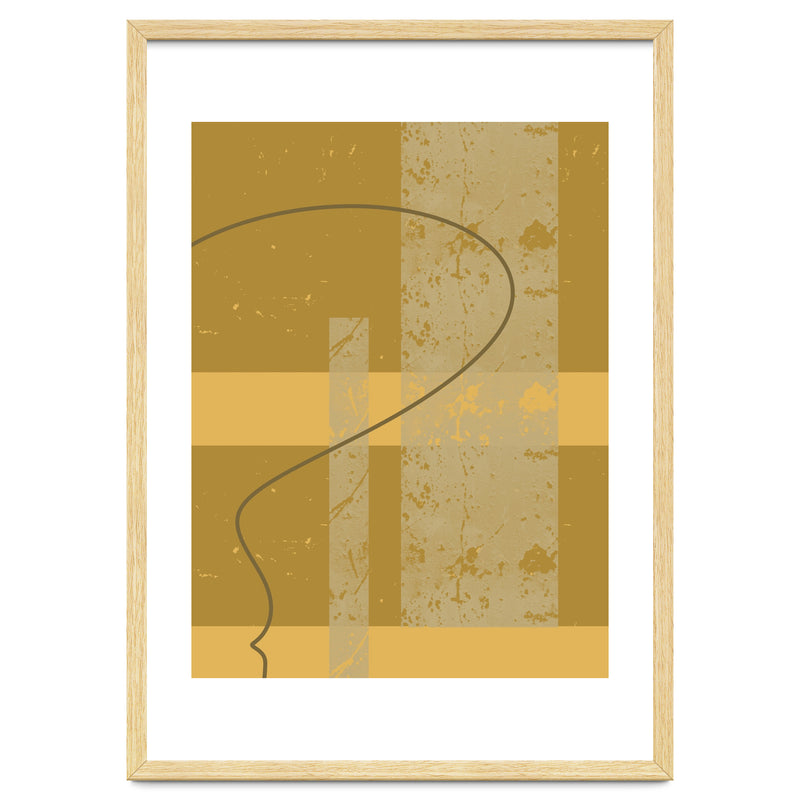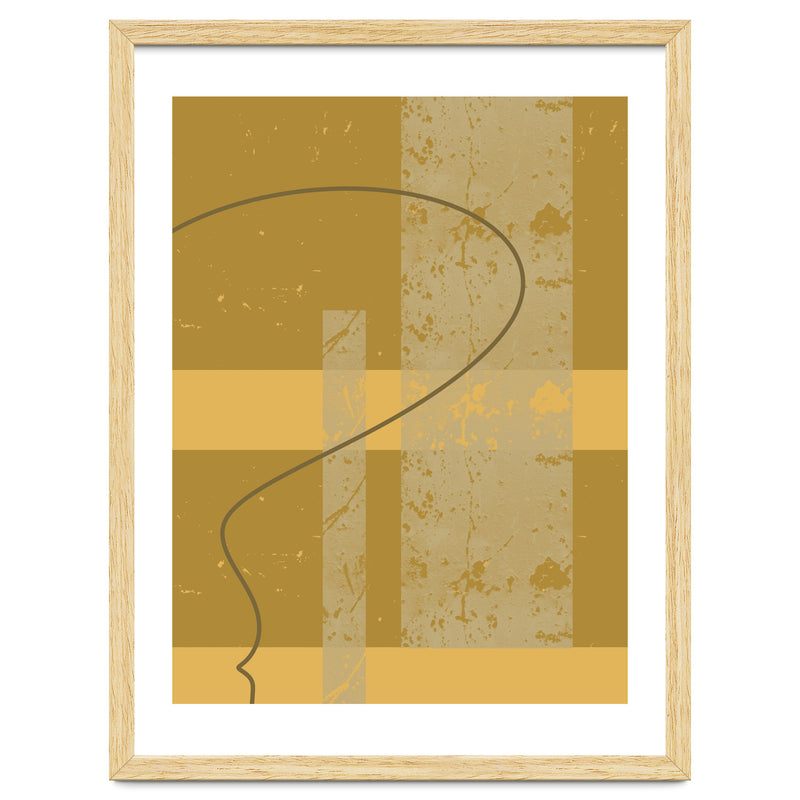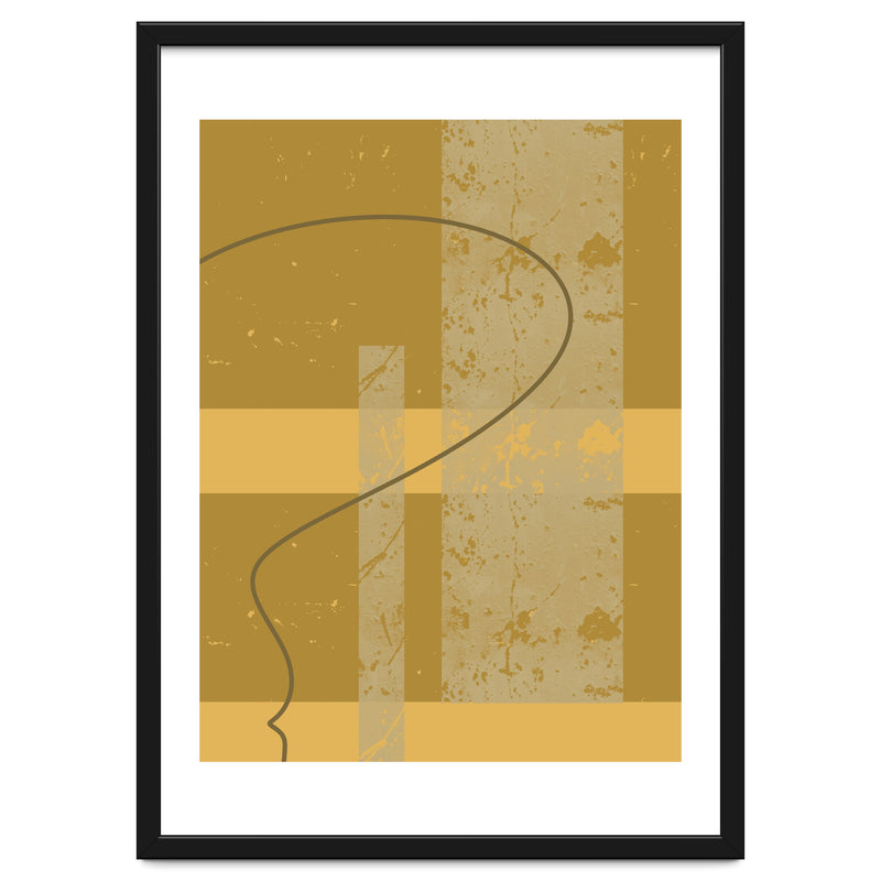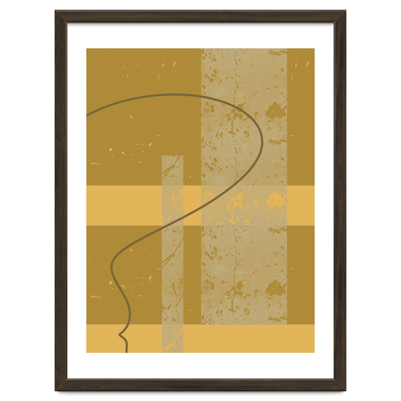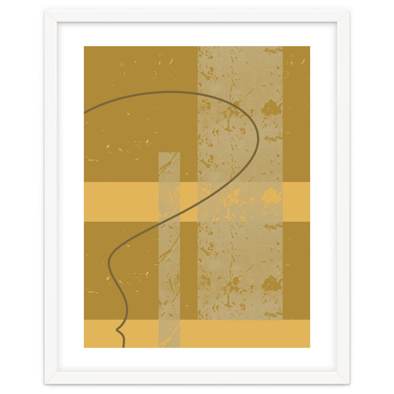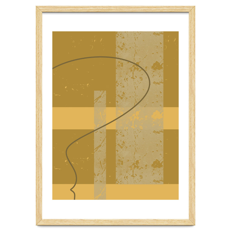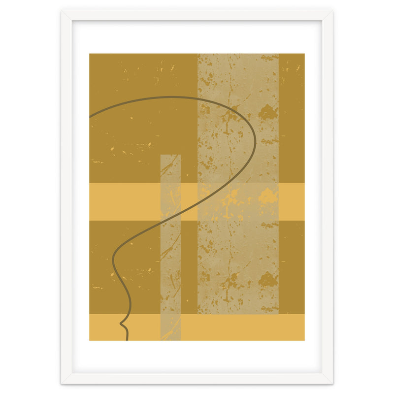 An abstract composition featuring a facial portrait with minimalist lines, combined with geometric shapes and smooth textures, creating an elegant and contemporary impression.