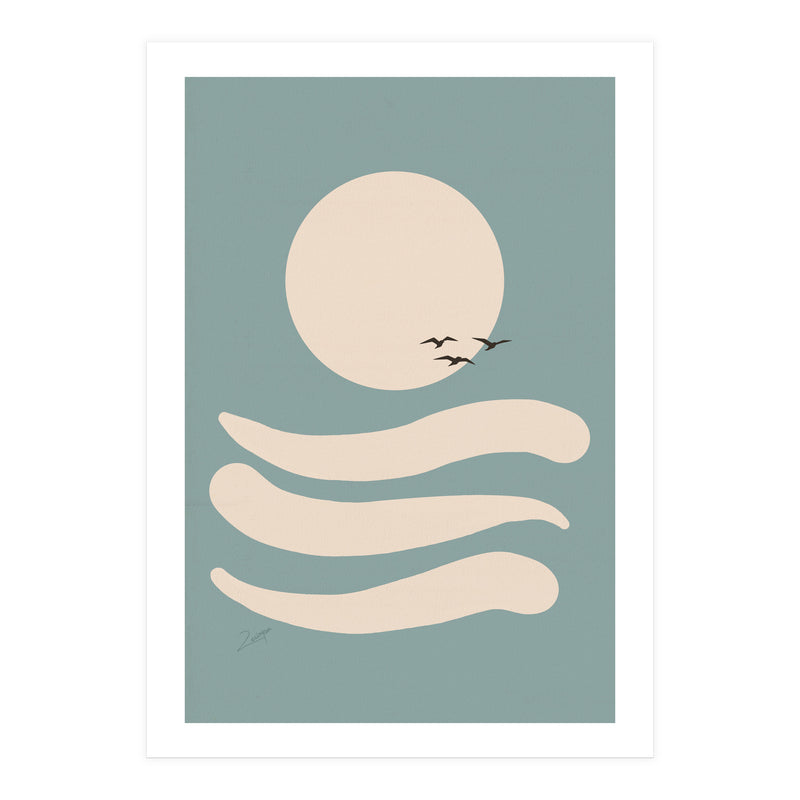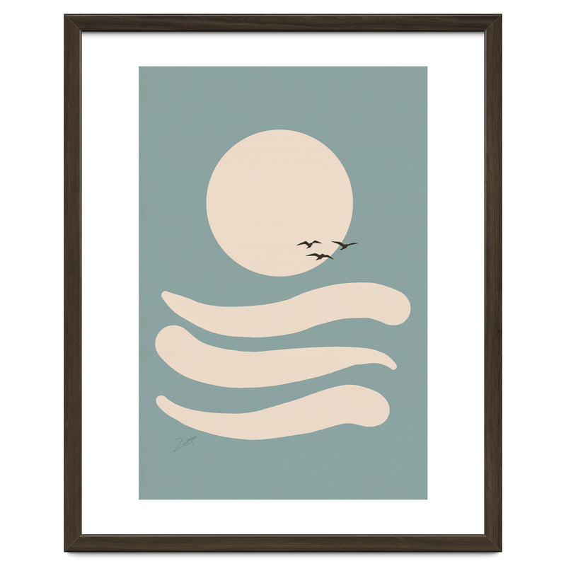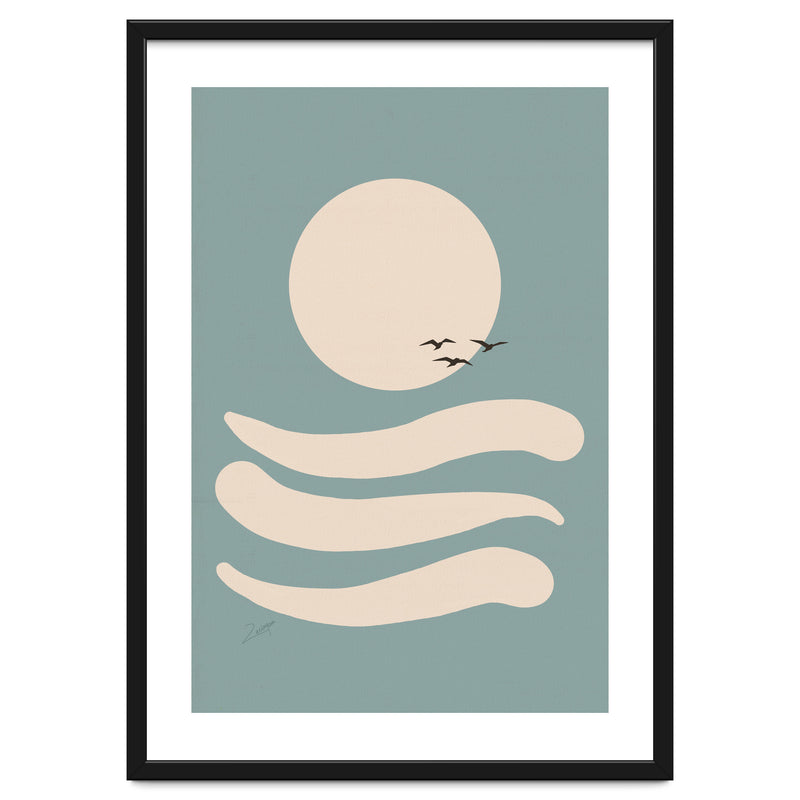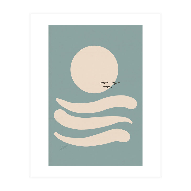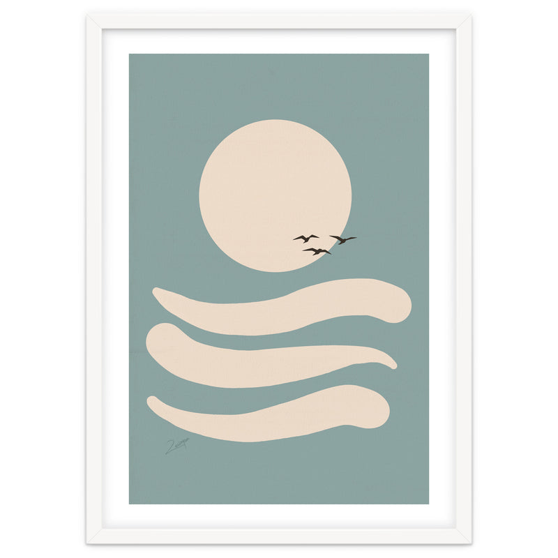 A small, white border frames the artwork for a “faux-matted” look. White border width is 2cm - 6.5cm (approx 1" to 2.5") depending on artwork size.