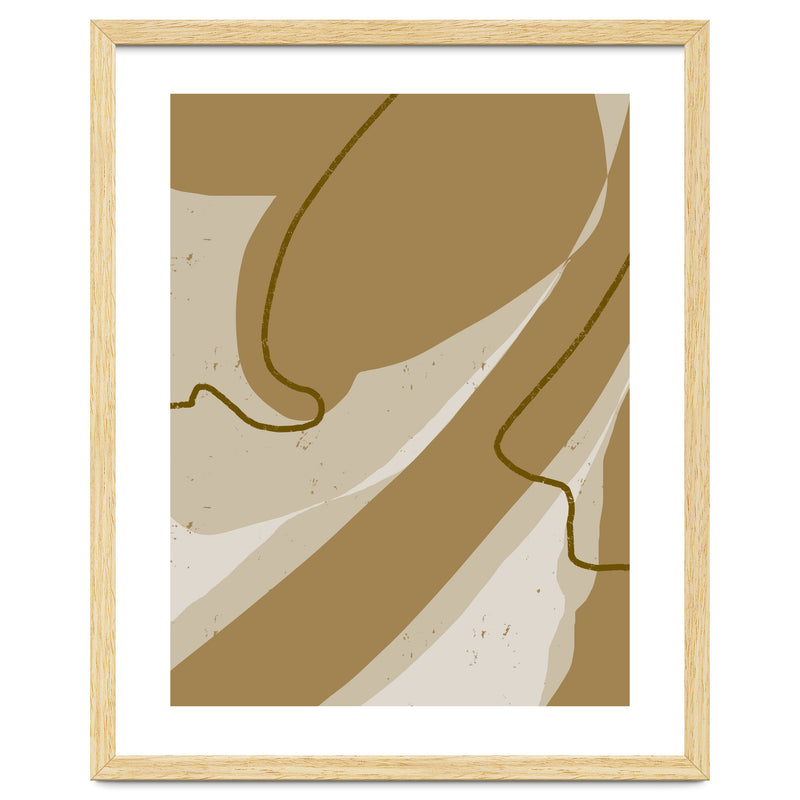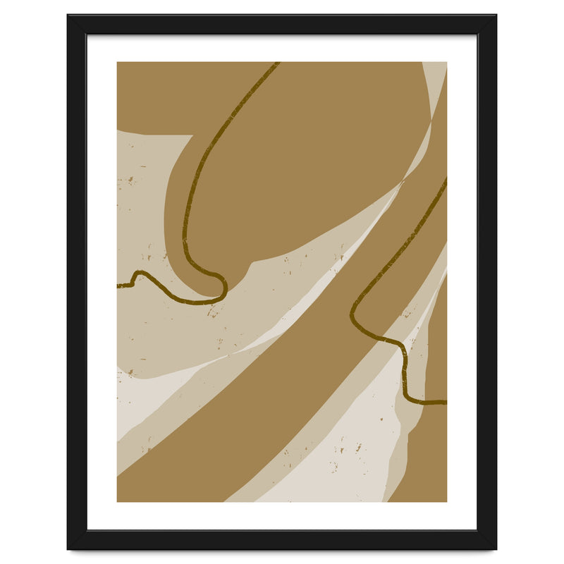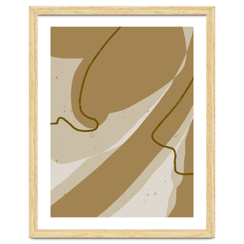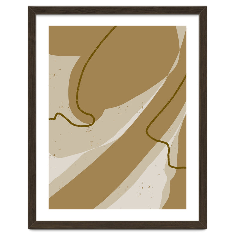 Soft layers of brown and flowing lines create a serene dusk atmosphere on gentle sand dunes, radiating warmth and peace.