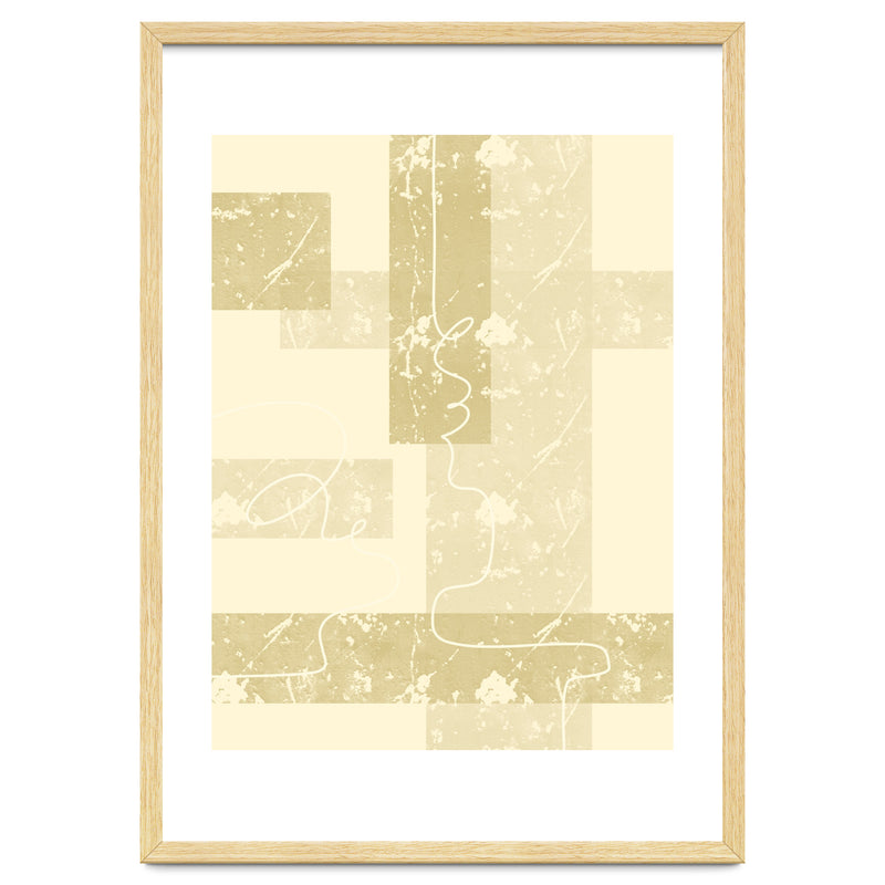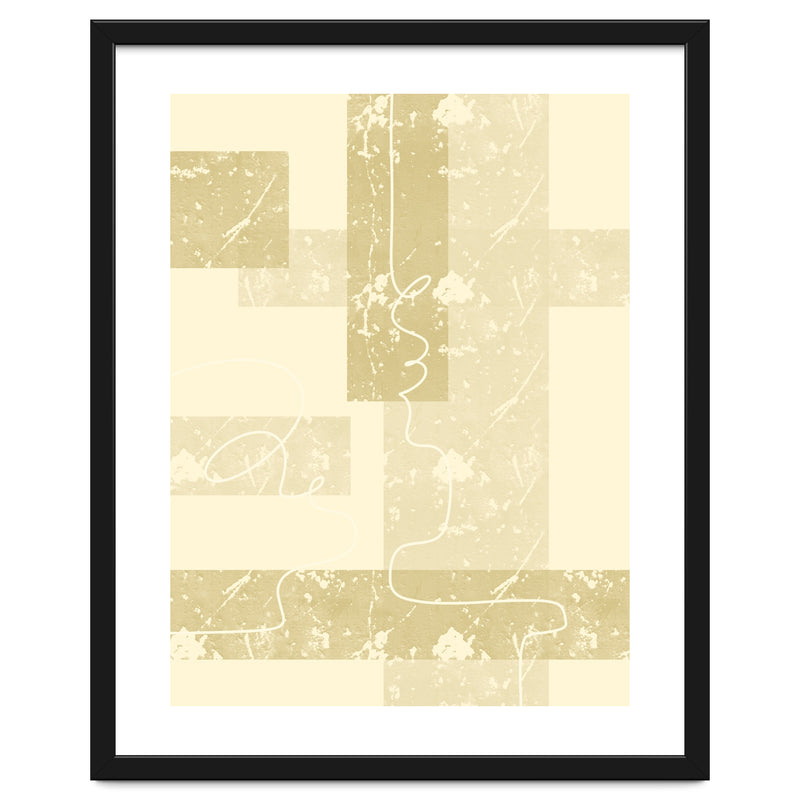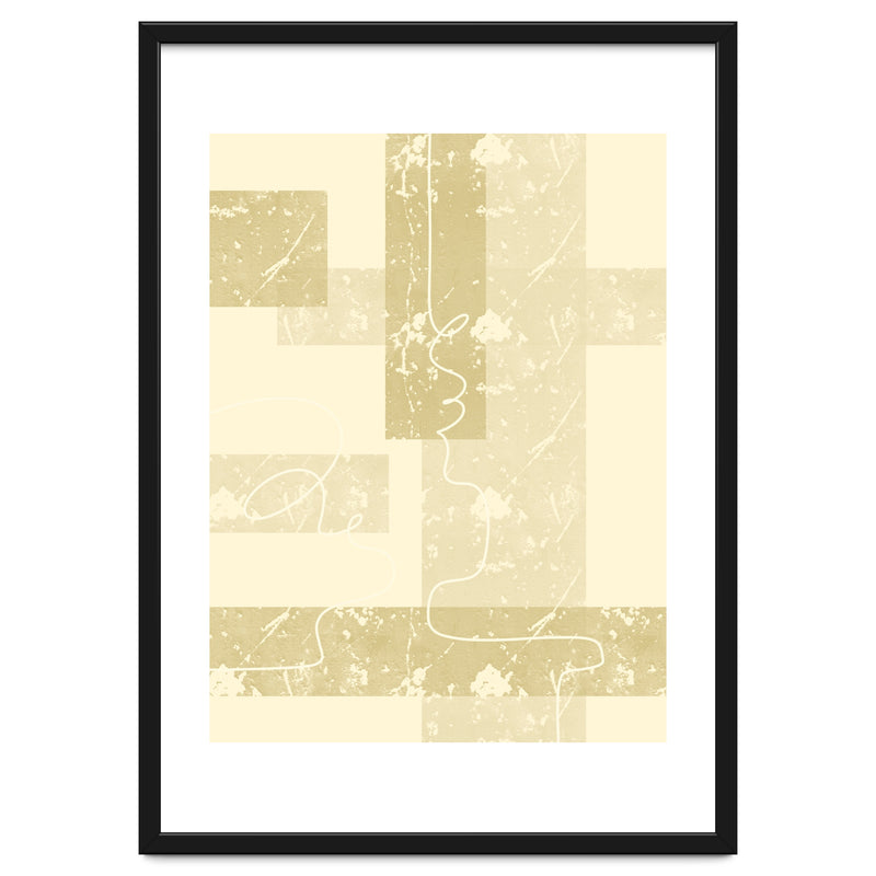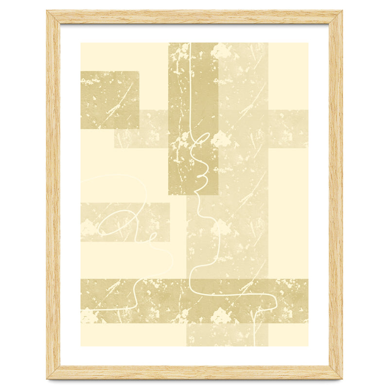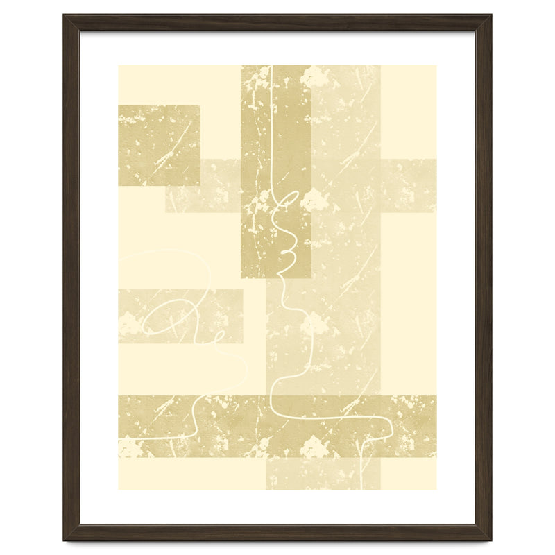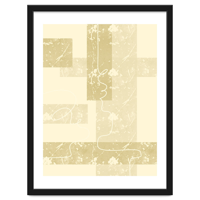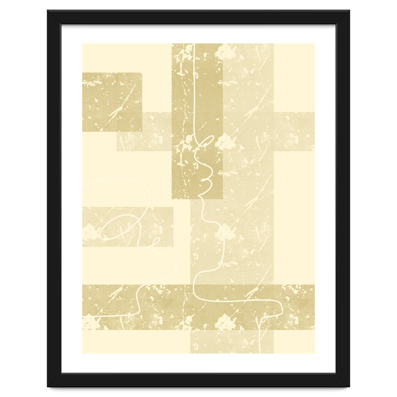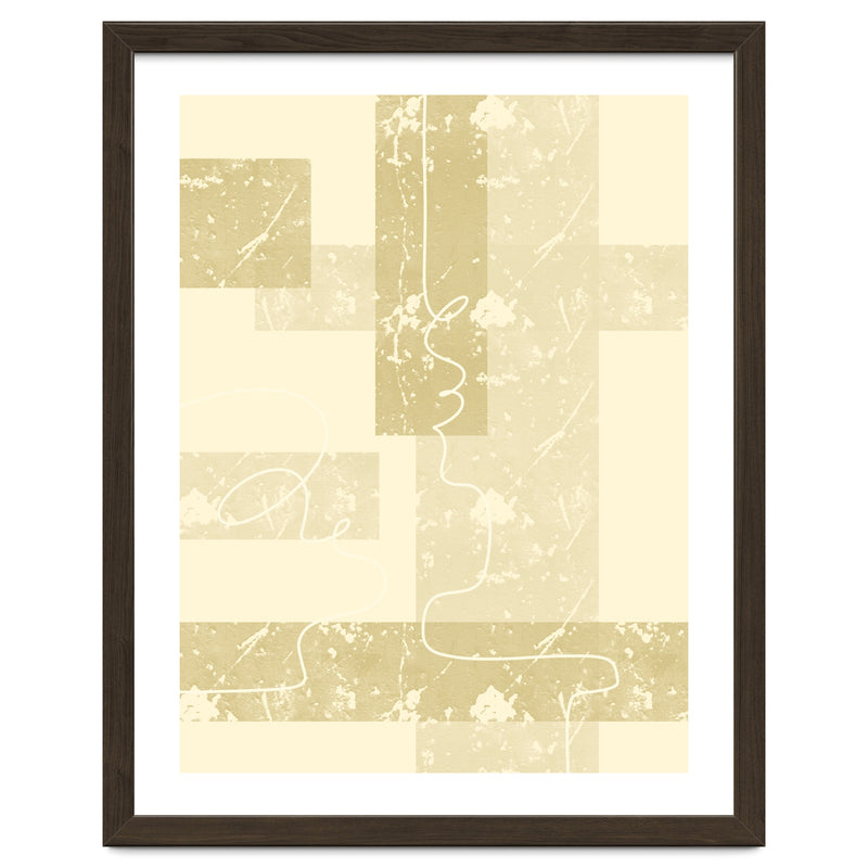 An abstract composition featuring the interaction between geometry and lines in various shades of natural colors, creating a dynamic and harmonious visual.