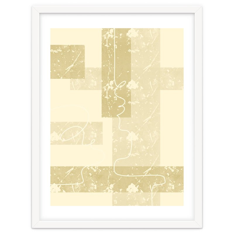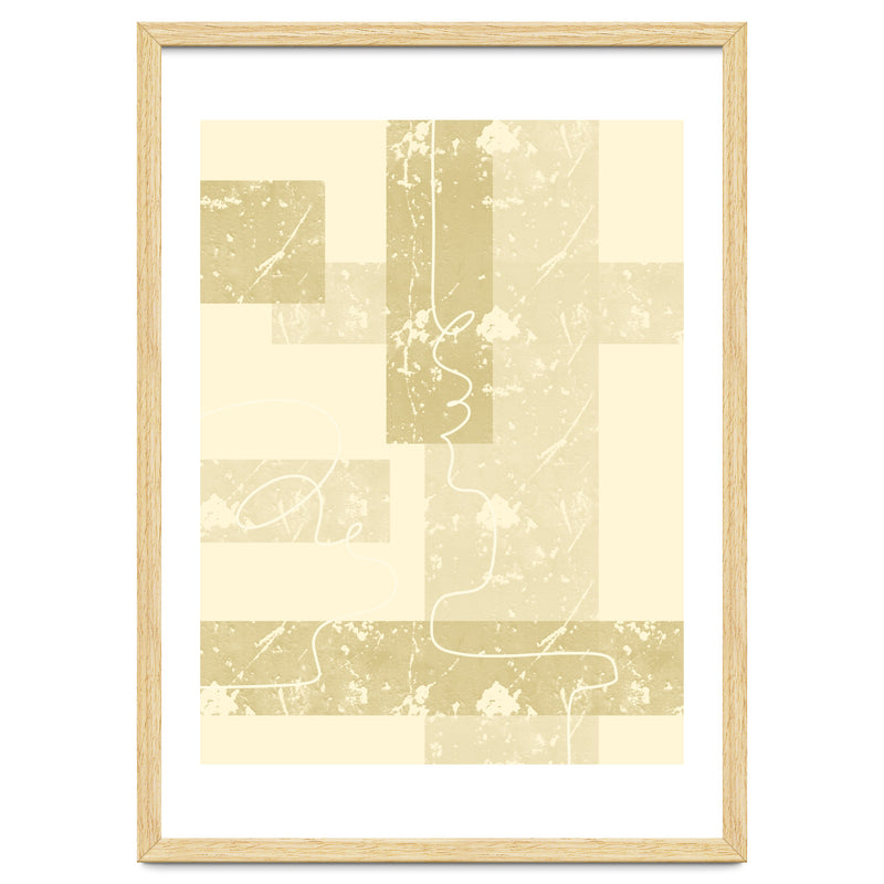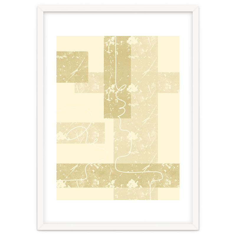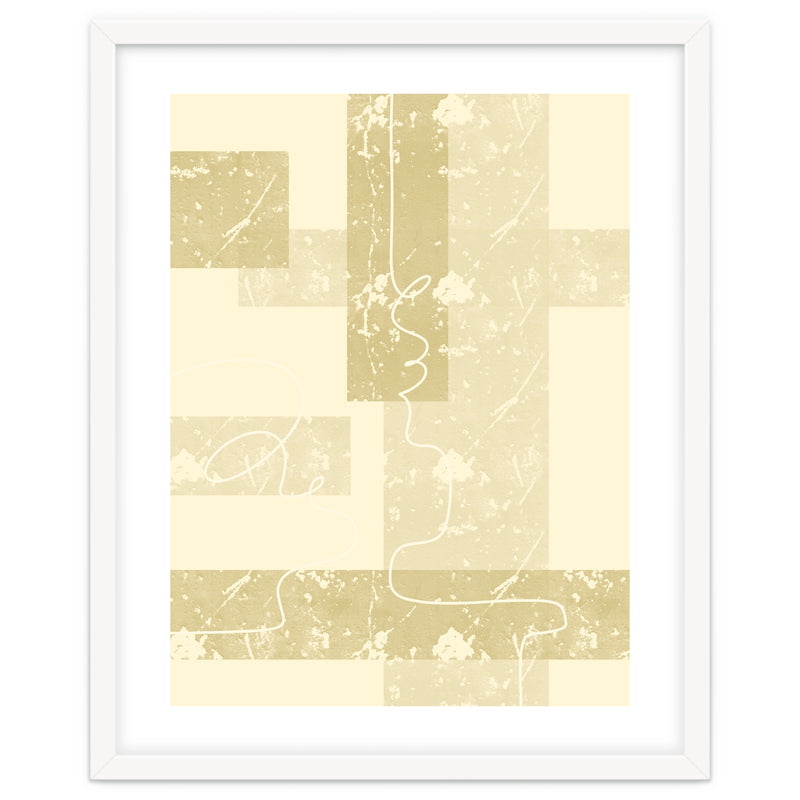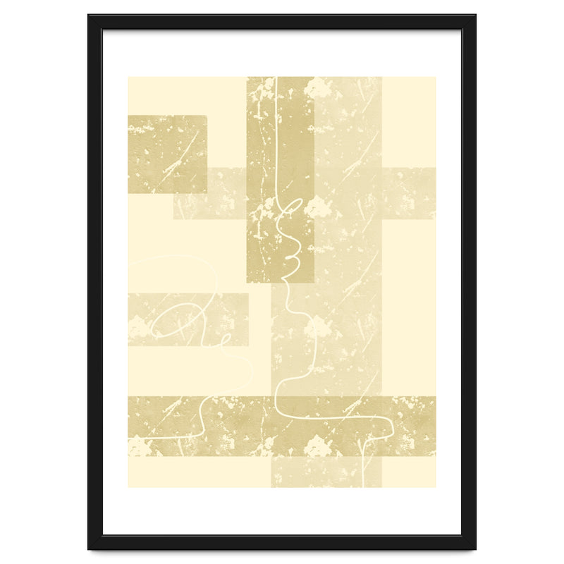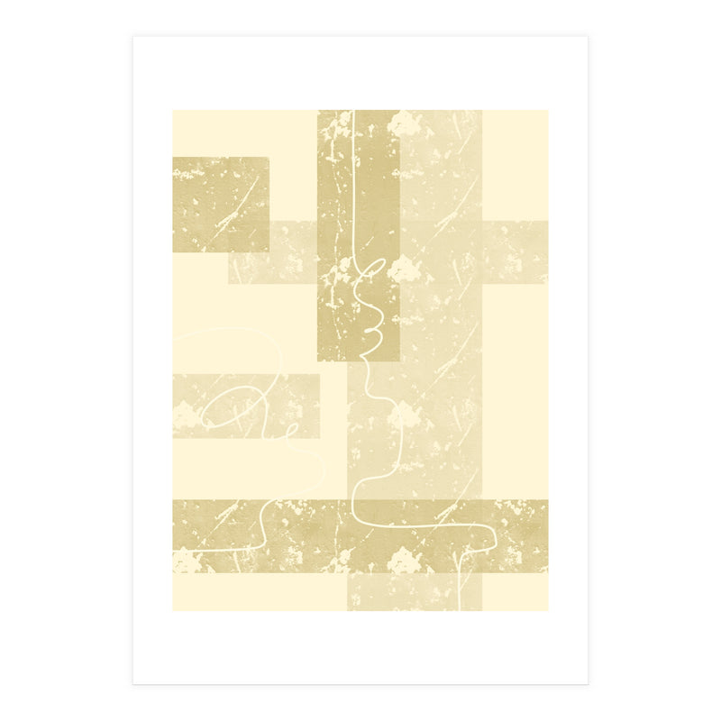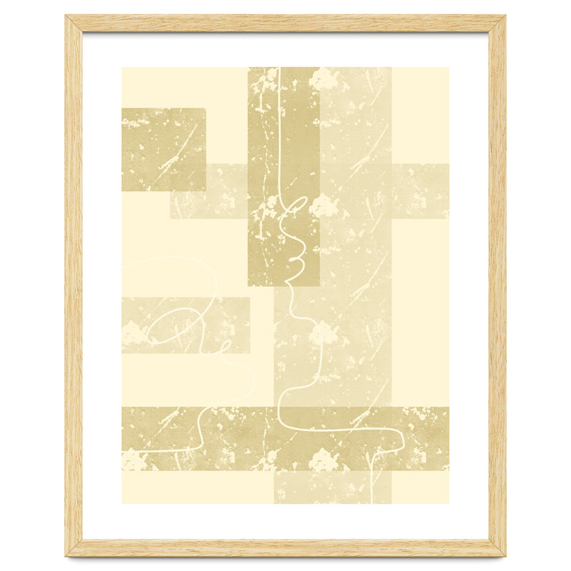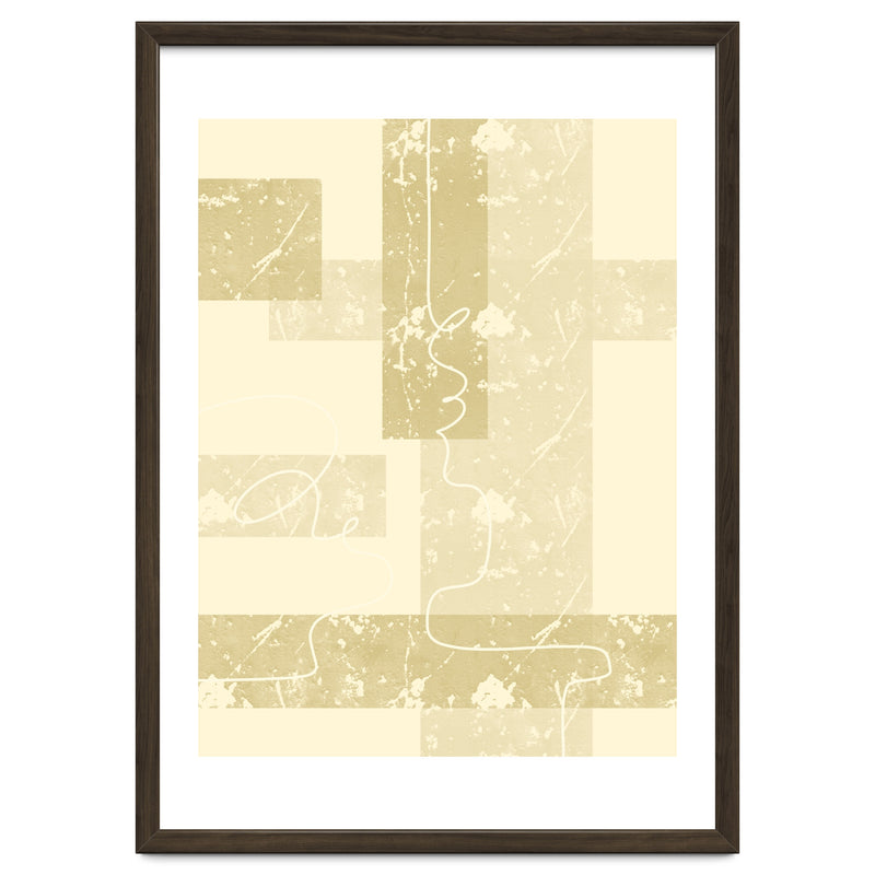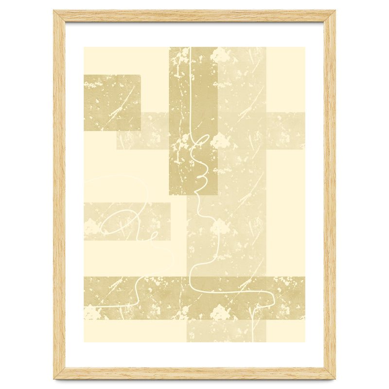 An abstract composition featuring the interaction between geometry and lines in various shades of natural colors, creating a dynamic and harmonious visual.