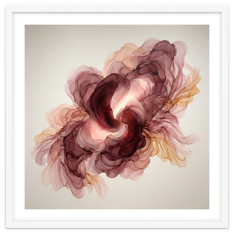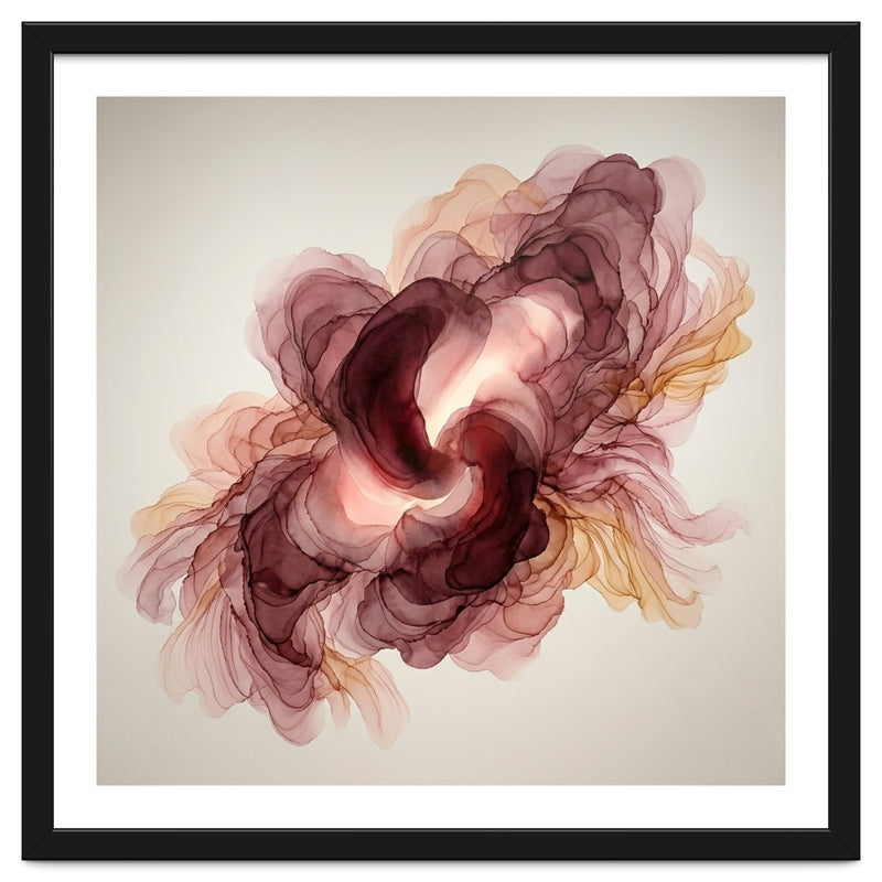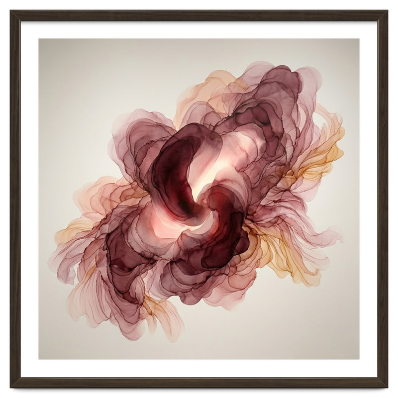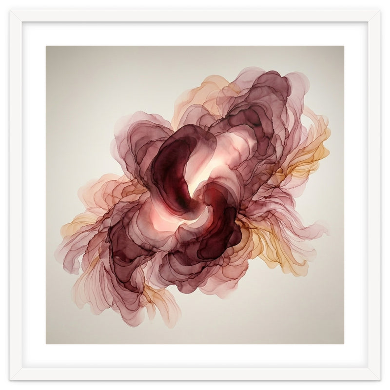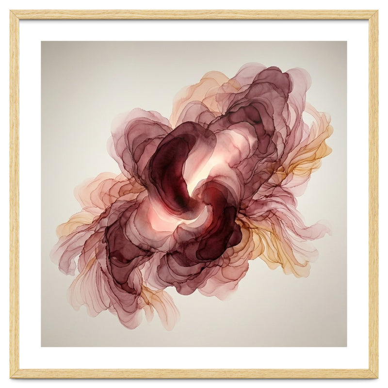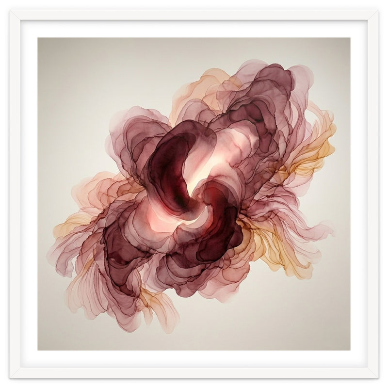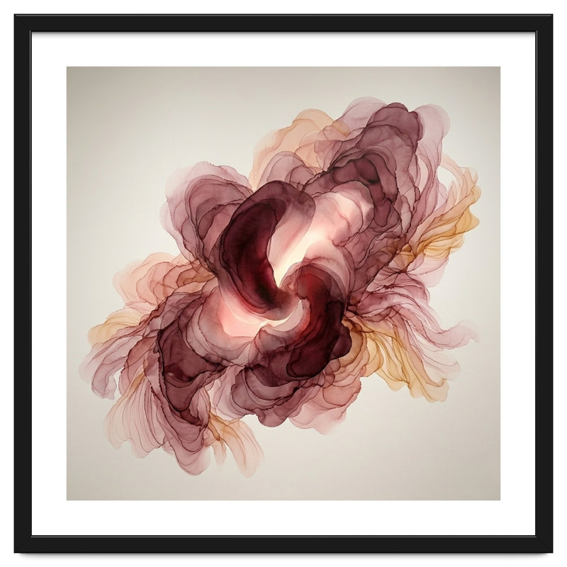 A fluid exploration of movement and light, this abstract piece features delicate layers of burgundy and terracotta ink. The ethereal, translucent veils mimic the natural unfolding of a flower, bringing a sense of organic warmth and modern serenity to any contemporary interior.