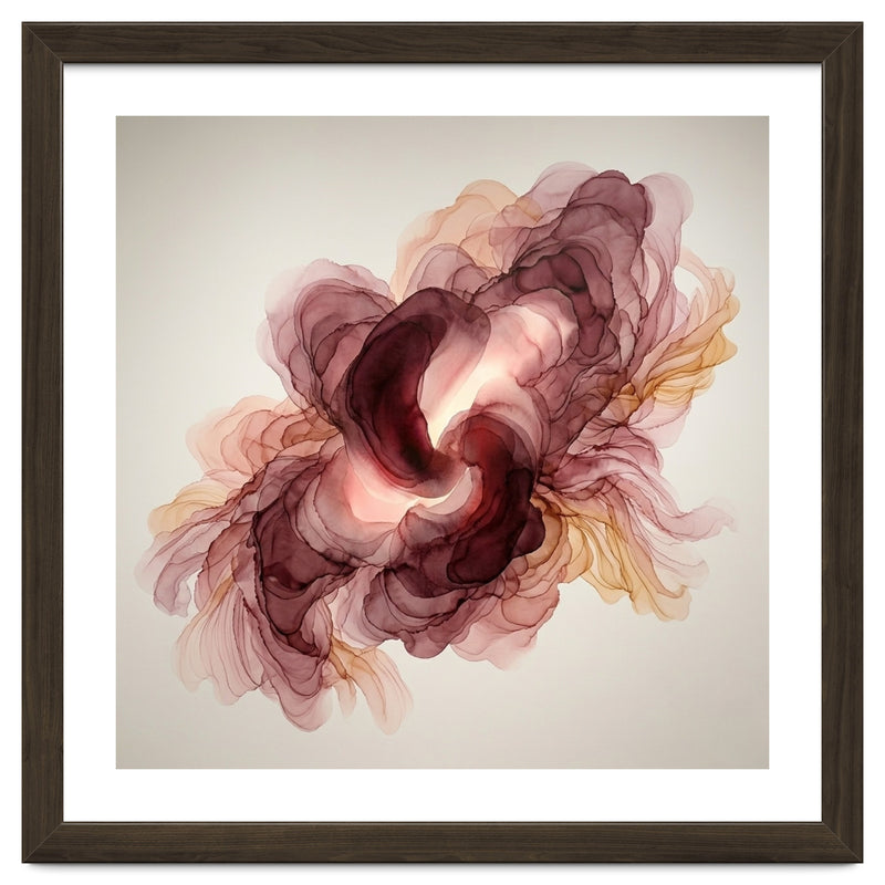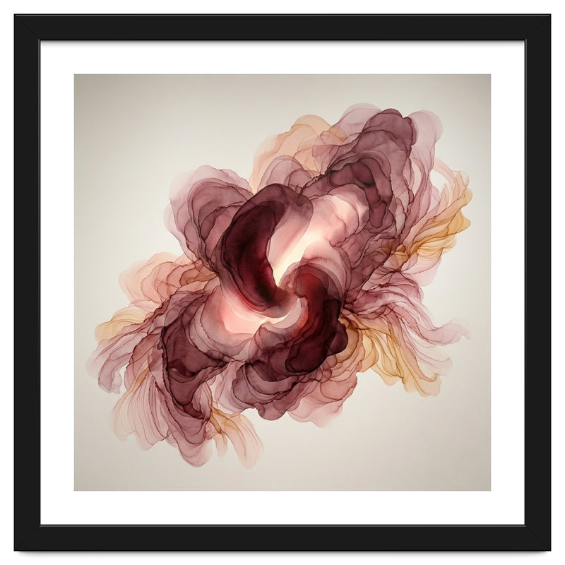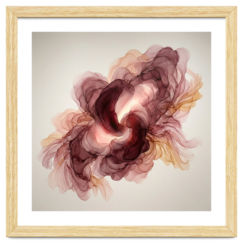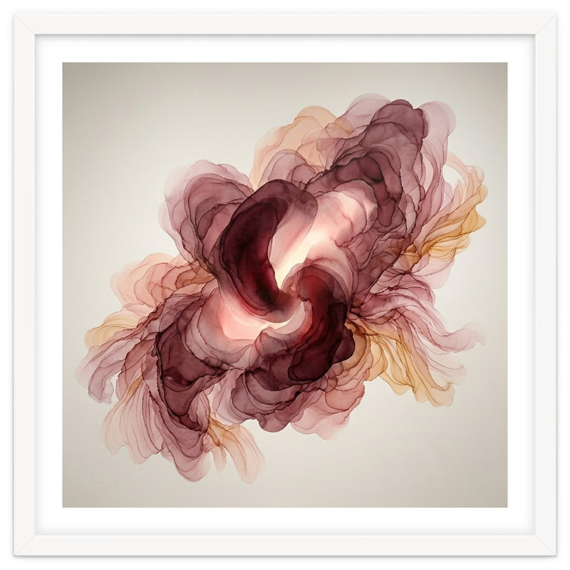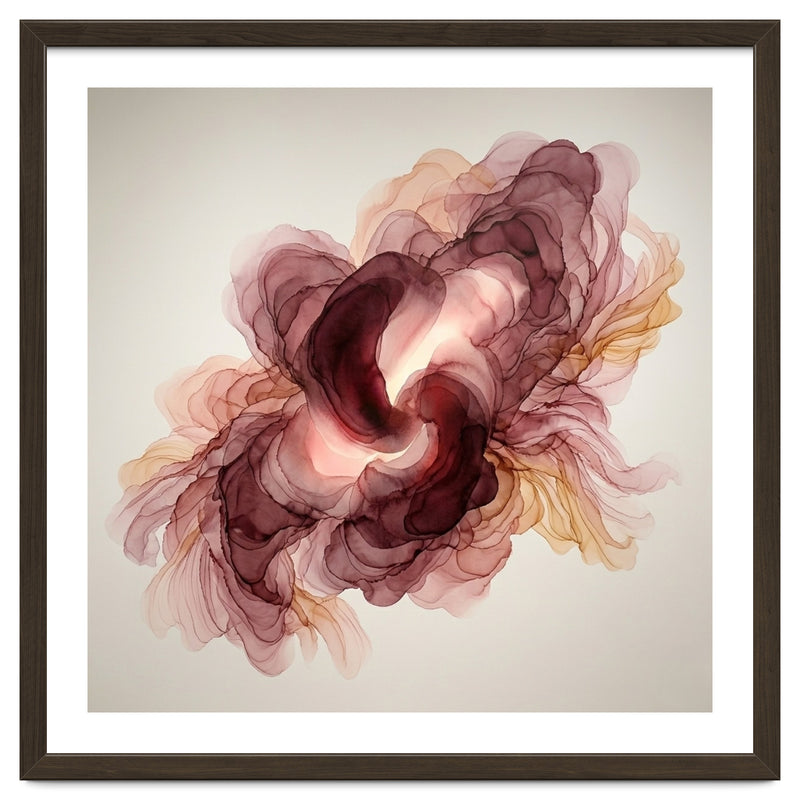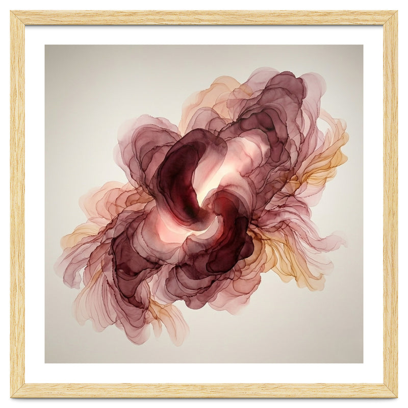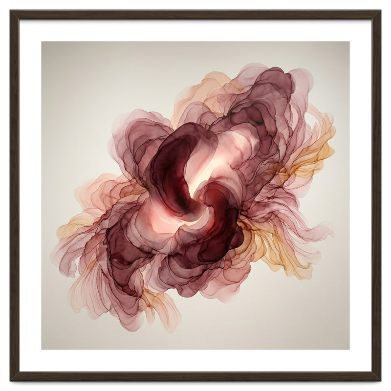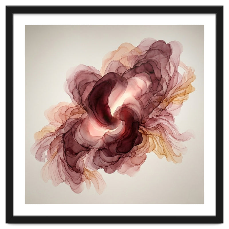 A fluid exploration of movement and light, this abstract piece features delicate layers of burgundy and terracotta ink. The ethereal, translucent veils mimic the natural unfolding of a flower, bringing a sense of organic warmth and modern serenity to any contemporary interior.